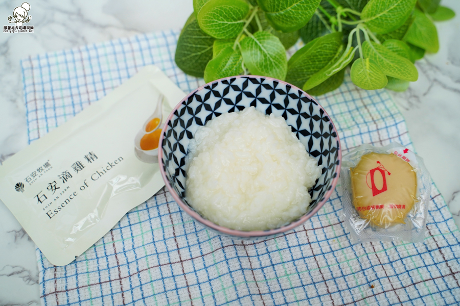 也可以簡單調理製作營養滿滿的高蛋白質粥,熬煮白粥可以加入石安牧場滴雞精