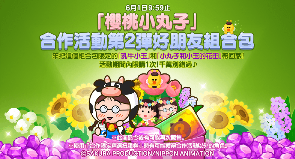 喜歡小丸子的朋友準備好了嗎?這次合作活動推出了內含「乳牛小玉」和裝飾「小丸子和小玉的花田」的特別組合包,活動期間內每人限購1個,千萬別錯過!