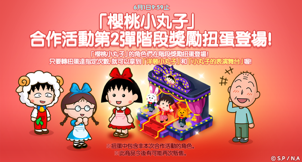「櫻桃小丸子」合作階段獎勵扭蛋將於合作期間登場!