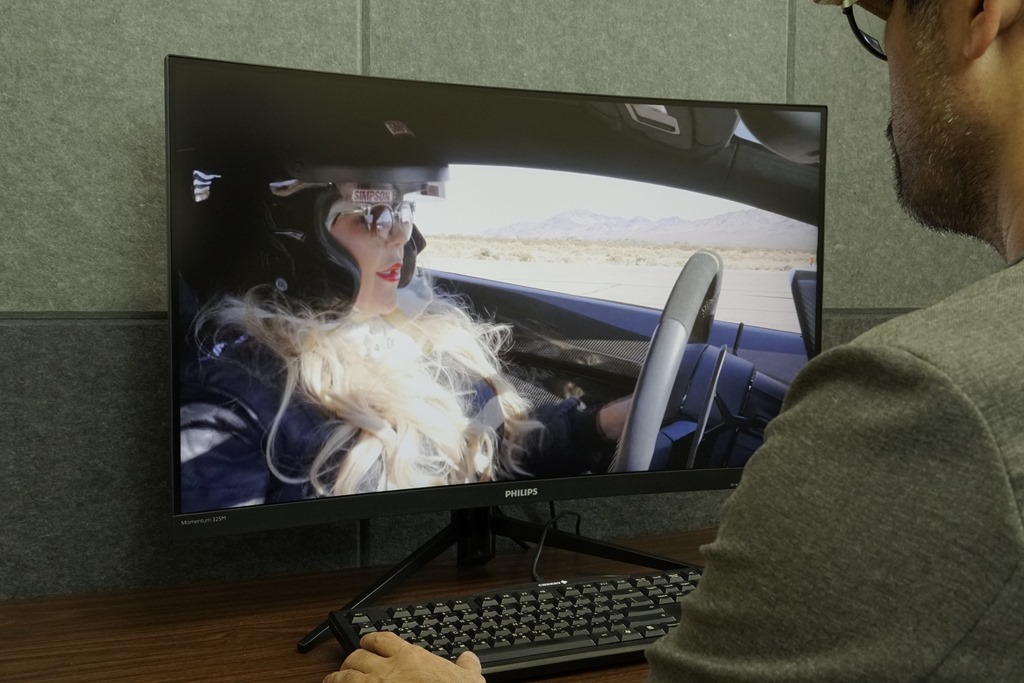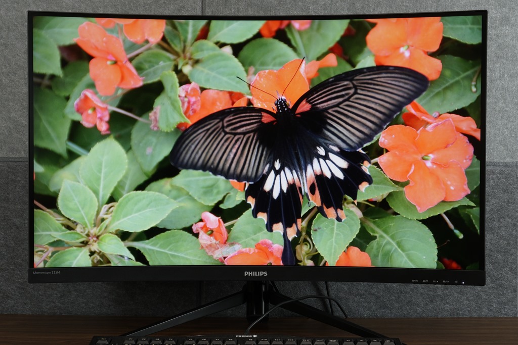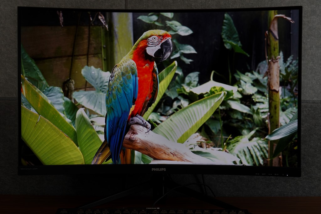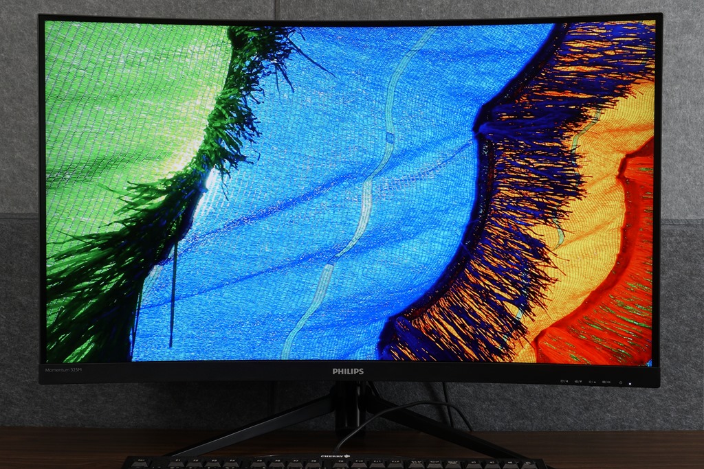 長時間工作時,眼睛的舒適非常重要,飛利浦 Momentum 325M8C 採用 VA LED 多象限垂直配向技術,讓靜態對比高達 3000:1,加上使用不閃爍技術,就算調暗螢幕亮度也可以更清晰看到螢幕內容,也不會因為閃爍造成眼睛不適。實際將螢幕調暗,並以高速快門測試,發現不會產生掃描紋,也證明螢幕的不閃爍技術非常到位。
