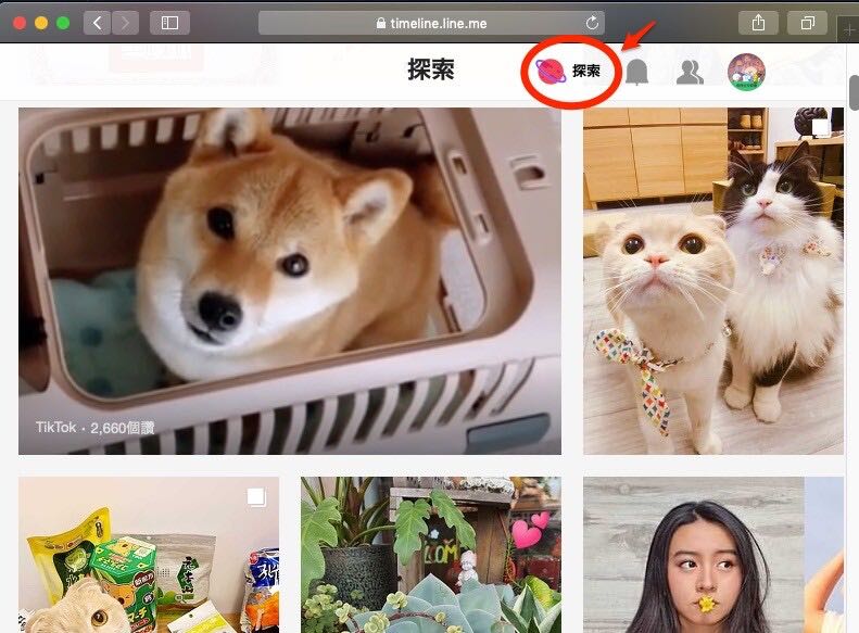 ▼ LINE貼文串的網頁版。新的「探索」功能在這邊也有!