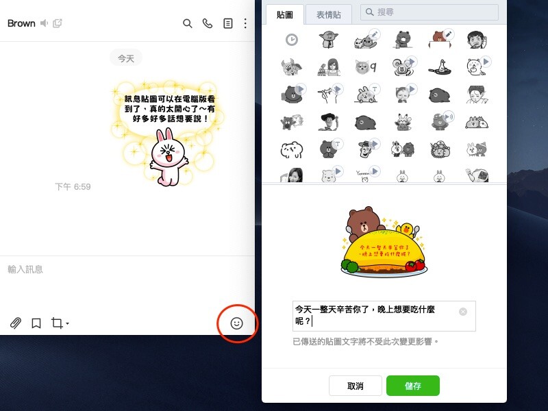 ▼ 更新後,訊息貼圖就可以在電腦版上看得到、也可以在電腦版上編輯文字了!