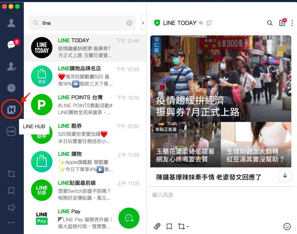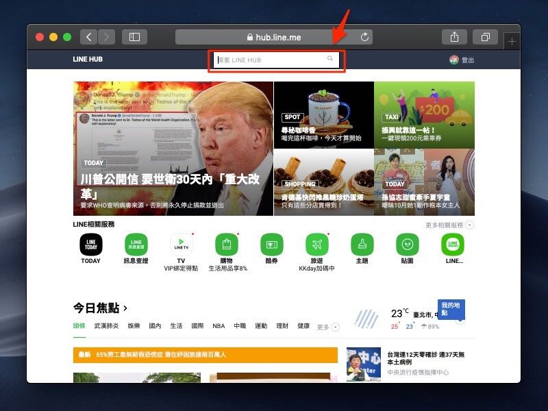 ▼ LINE HUB 可以說是網頁版的 LINE 主頁,搜尋 LINE TODAY 新聞透過這裡超方便!