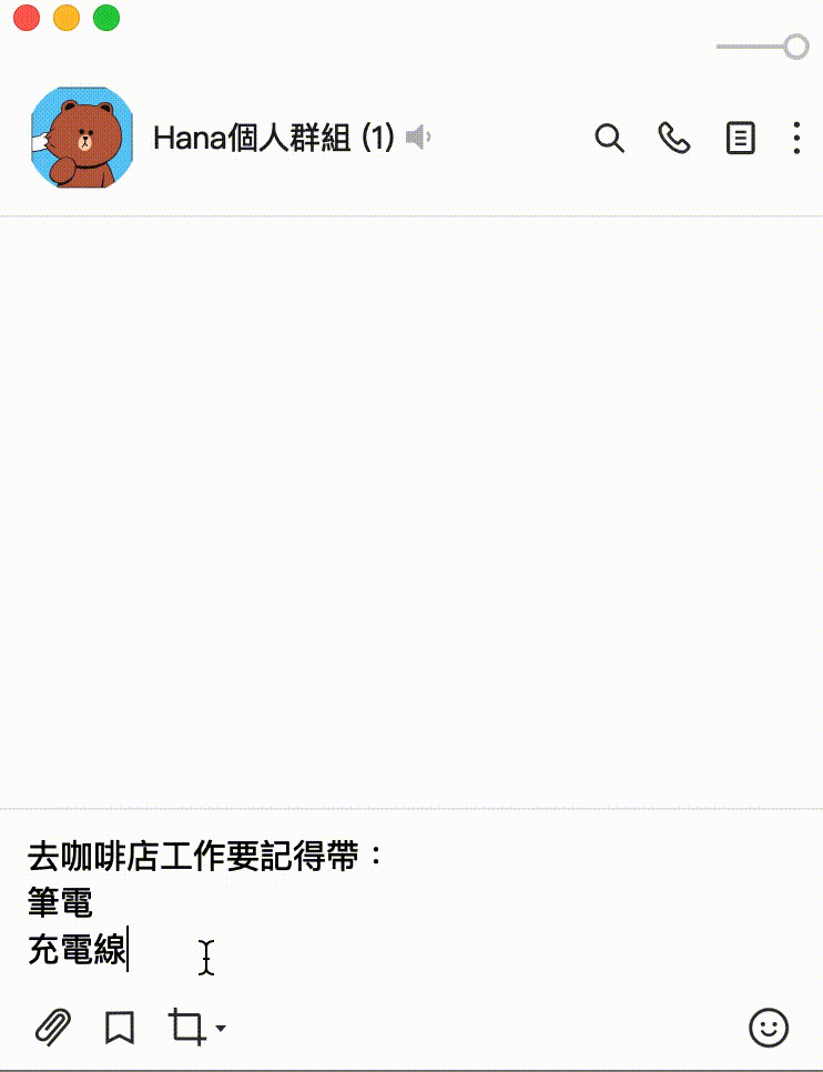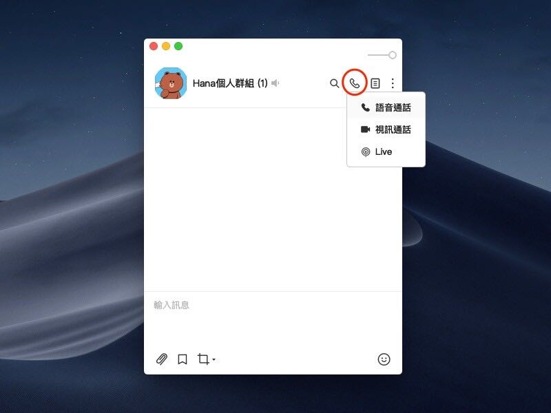 撥打 LINE 語音通話的小圖示,原本在輸入框的右上角,現在搬到整個視窗的右上角,跟手機版本的位置一樣。這個改動也是來自於用戶的意見回饋,有許多用戶表達希望電腦版的按鍵位置或功能,盡可能與手機版一樣,尋找按鍵時更直覺。