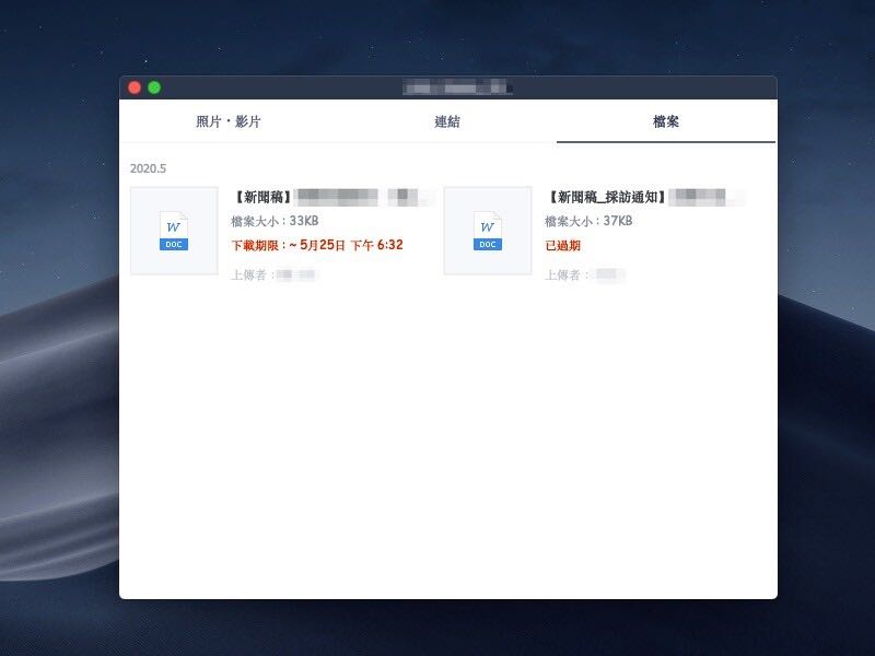 ▼ 更新後在聊天室右上角點開選單 > 檔案,可看到下載期限與已過期的字樣,清楚顯示為紅字。