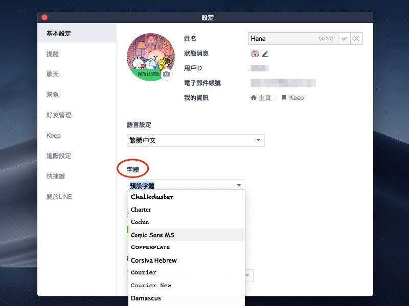 LINE 電腦版 Mac 版本新增字體:標楷體 (kai)、蘋方體 (PingFang)