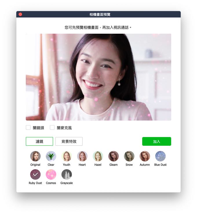 ▼ 更新後可以先預覽自己在畫面中呈現的樣子,例如套用濾鏡的樣子,再加入視訊通話。(Mac 先行,Windows 近期上線)