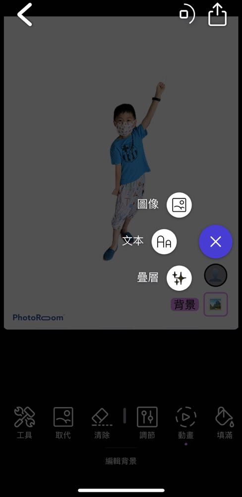 5) 是不是超簡單又好玩?不過要注意的是 PhotoRoom 有分免費版和 Pro 版兩種,有些比較進階的版型是只限 Pro 版分享,而免費版還會有浮水印,所以如果介意的朋友也可以直接升級到 Pro 版。