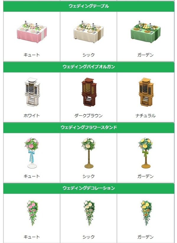 ,並得到一系列現代限定的夢幻道具。根據日本消息,這次的六月新娘活動將推出 53 款家具,當中更分成 Cute(キュート)、Chic(シック)以及 Garden(ガーデン) 3 個系列,絕對值得喜歡浪漫或是有蒐藏習慣的森友們全部收藏!