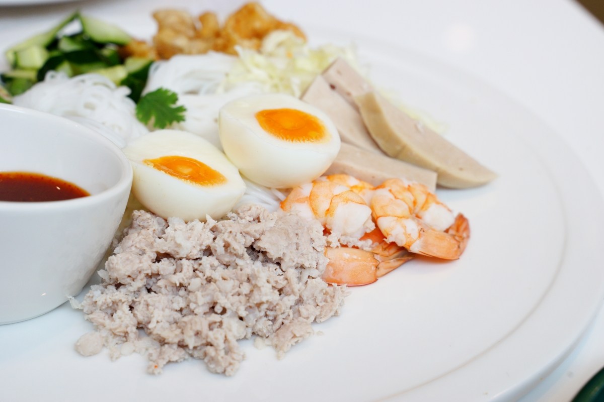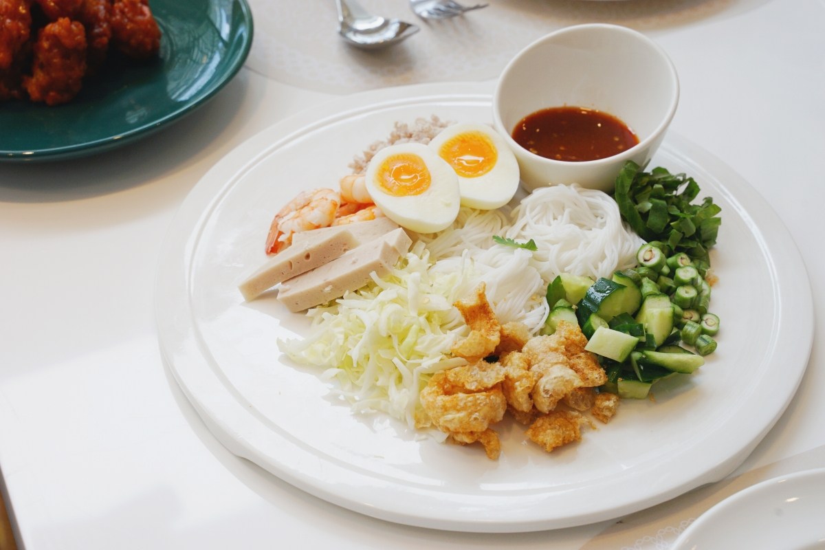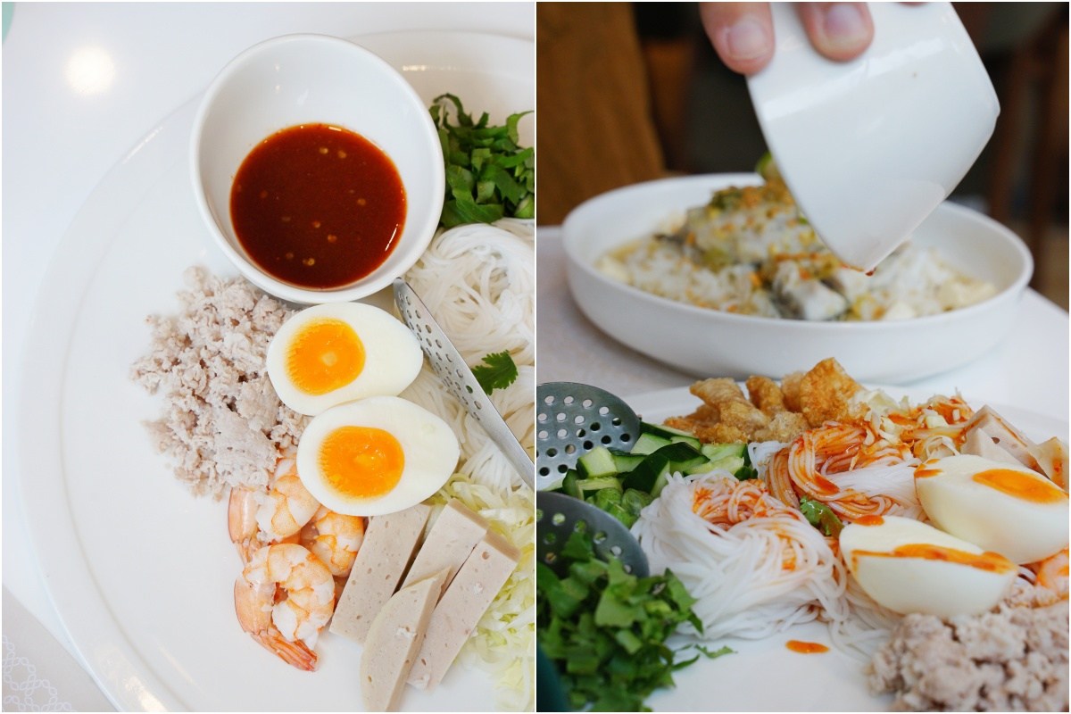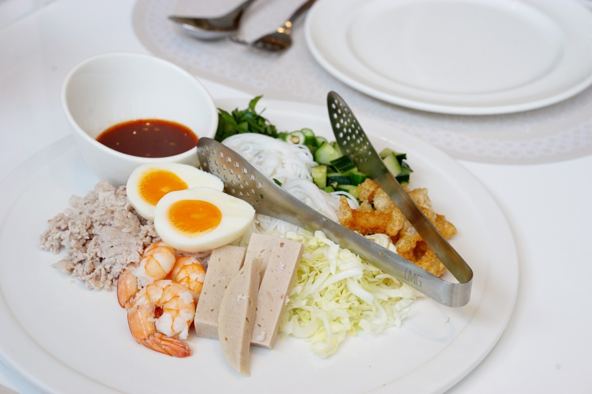 這一道辣米線沙拉清爽開胃,搭配蝦子、肉末、炸豬皮、溏心蛋、小黃瓜,淋上醬汁拌勻,辣度不會很辣,我覺得辣香比較濃郁,但實際上並不會過於辣口,可以優雅的享受前菜,又不失泰式料理的本質。