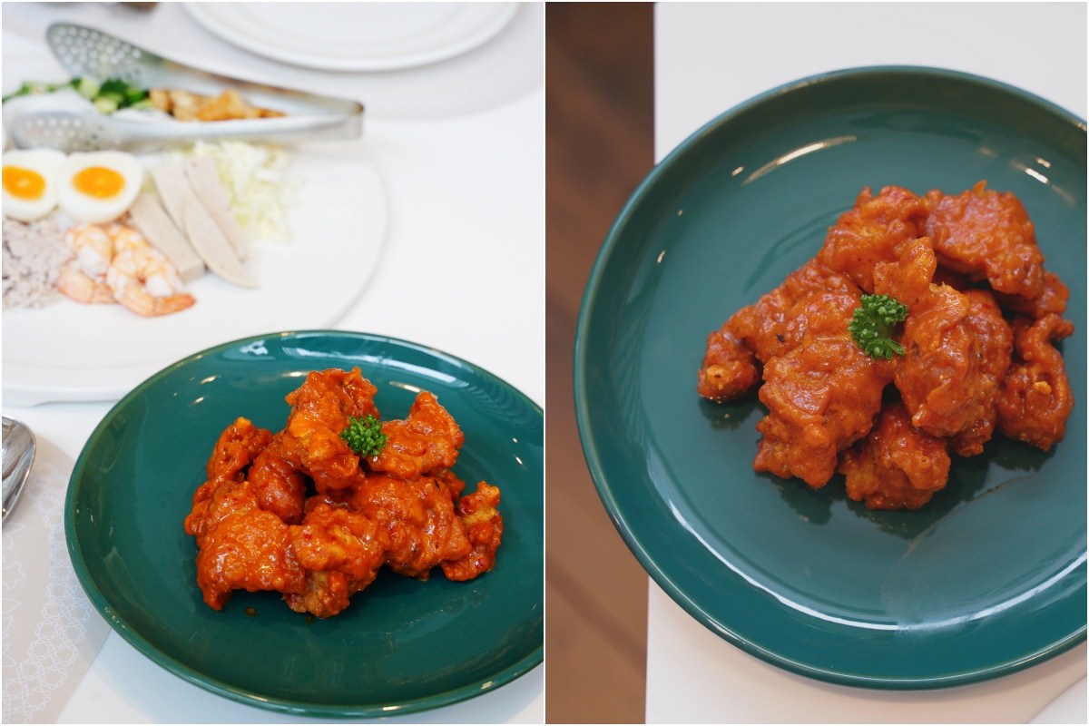 熱熱的一盤鹹蛋黃炸雞,酥炸完成裹上滿滿濃郁的鹹蛋黃醬汁,味道濃郁,鹹香夠味。肉質帶有彈性不會太過乾硬,非常涮嘴,想一口接一口的吃下去!新竹開幕限定,大家一定要點!
