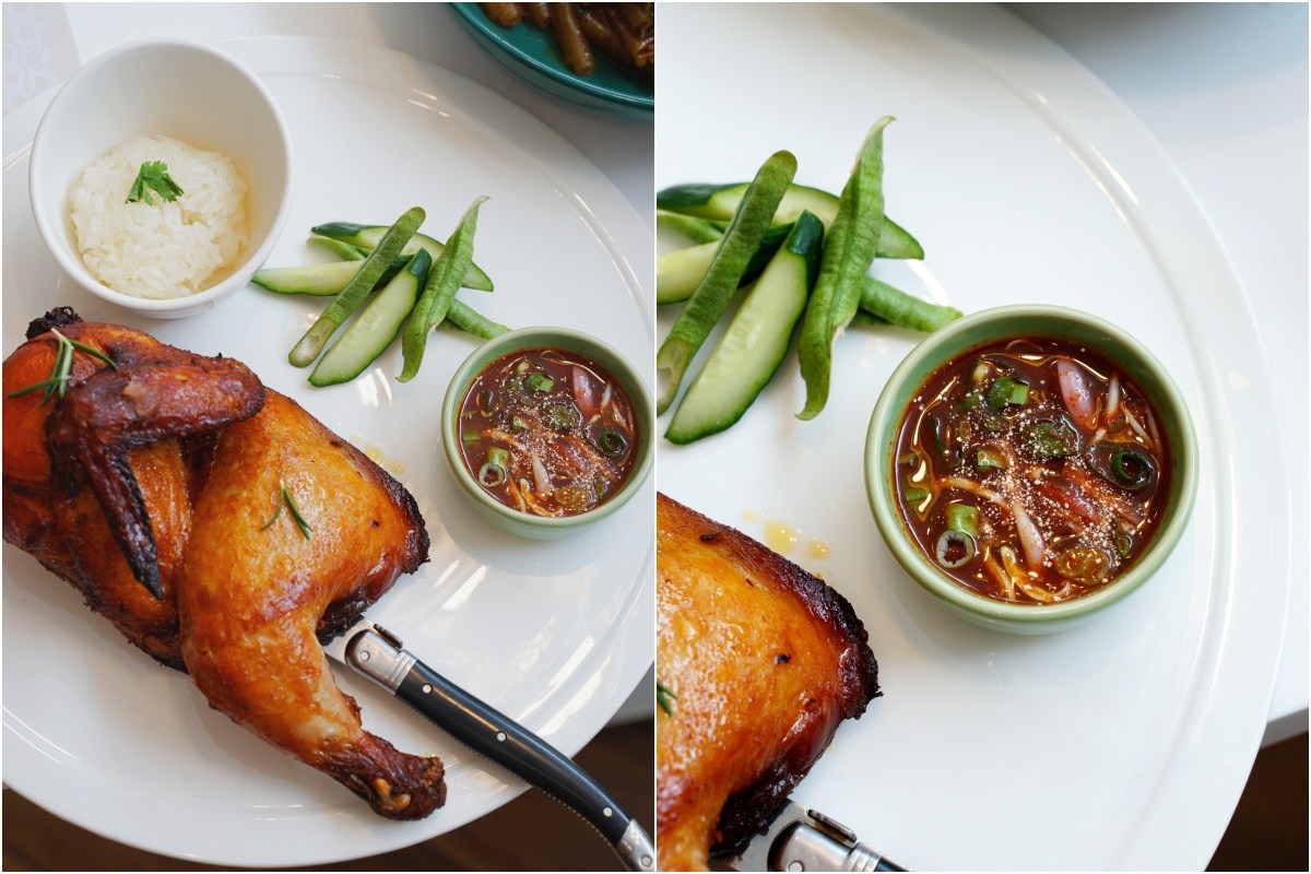 大部分泰式餐廳比較少有以肉排為主食的選擇,Lady nara 有特別推出主餐的選擇,這是我二訪吃的烤半雞,初訪時有吃烤牛排,如果想要吃肉,我比較推薦這道迷迭香烤半雞,份量剛好,搭配泰式酸辣醬汁很夠味,烘烤技術很不錯,外皮上色,肉質還不錯,在比較裡面的肉質是有稍微乾一些,但是搭配醬汁就沒問題。