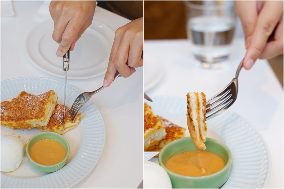 第一次和姐妹一起去用餐,第二次和好友喜多去用餐,這兩次在餐點的感受上不太一樣,我私心偏愛第二次用餐的餐點,餐點口味都更得我心,而鹹蛋黃炸雞和泰奶吐司這兩樣我兩次都有點,真心推薦讚讚讚。