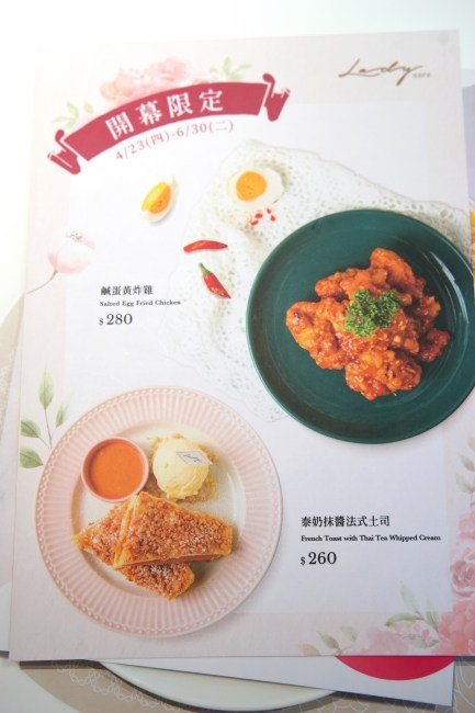 目前新竹店有開幕限定的兩道餐點,分別是鹹蛋黃炸雞與泰奶抹醬法式吐司,這兩道菜我先告訴各位務必點來吃!不知道之後還會不會有,因為口味真的很特別,是市面上沒有的,點就對了,懂?