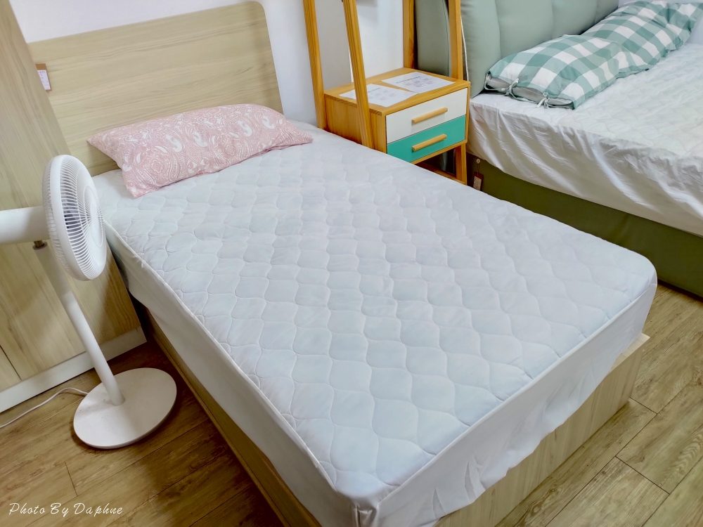 ▼塔菲媞灰橡床頭箱造型簡單,即使積灰塵也很好清理。Daphne 家裡的床頭雖可以擺放物品很方便,但是積灰塵時,變成要擦更大的面積,後來認為最多搭配一個床頭櫃就好,還能順便選購獨立筒床墊。