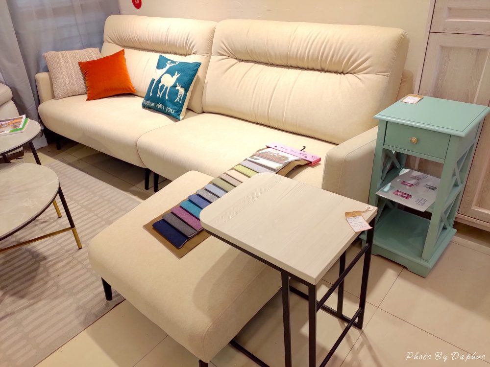 ▼很喜歡逛億家俱的其中一點是,門市人員都讓客人很自由地逛逛、參觀、選購、自己翻目錄,有問題才詢問,在這裡猶豫很久、選很久都不會有壓力,不過很危險的是,他們實在太會搭配了!很難目標性的鎖定單一商品,像這一區的沙發、茶几的配色,就讓人很想全部帶回家!