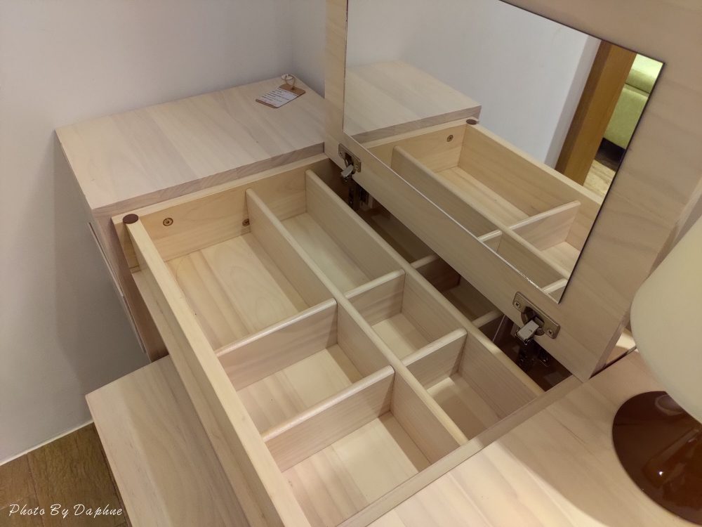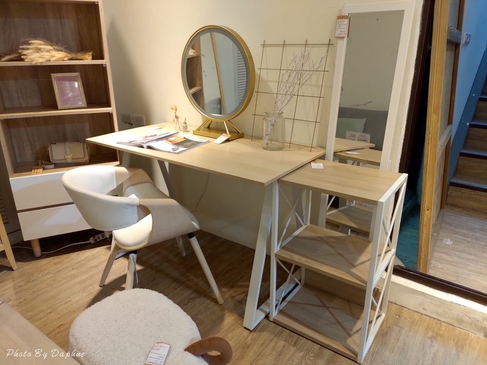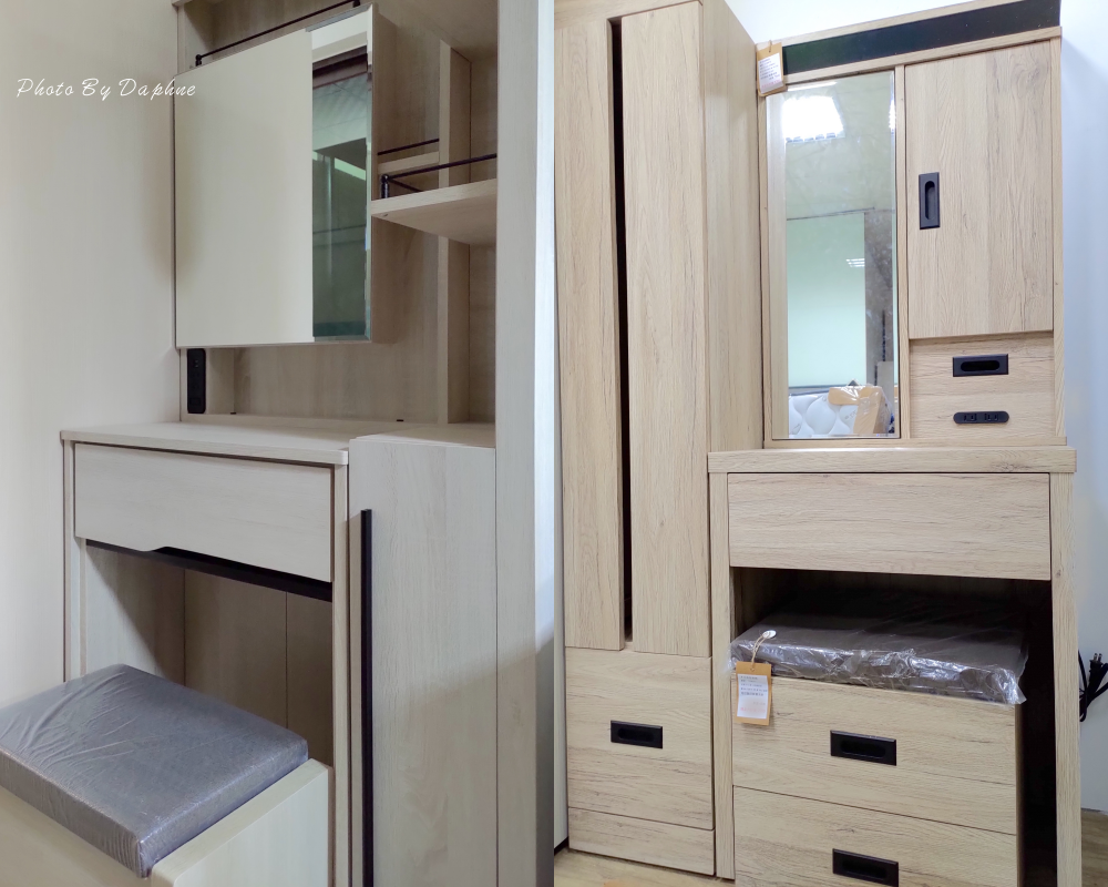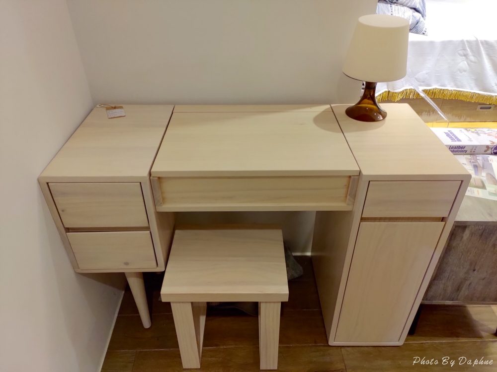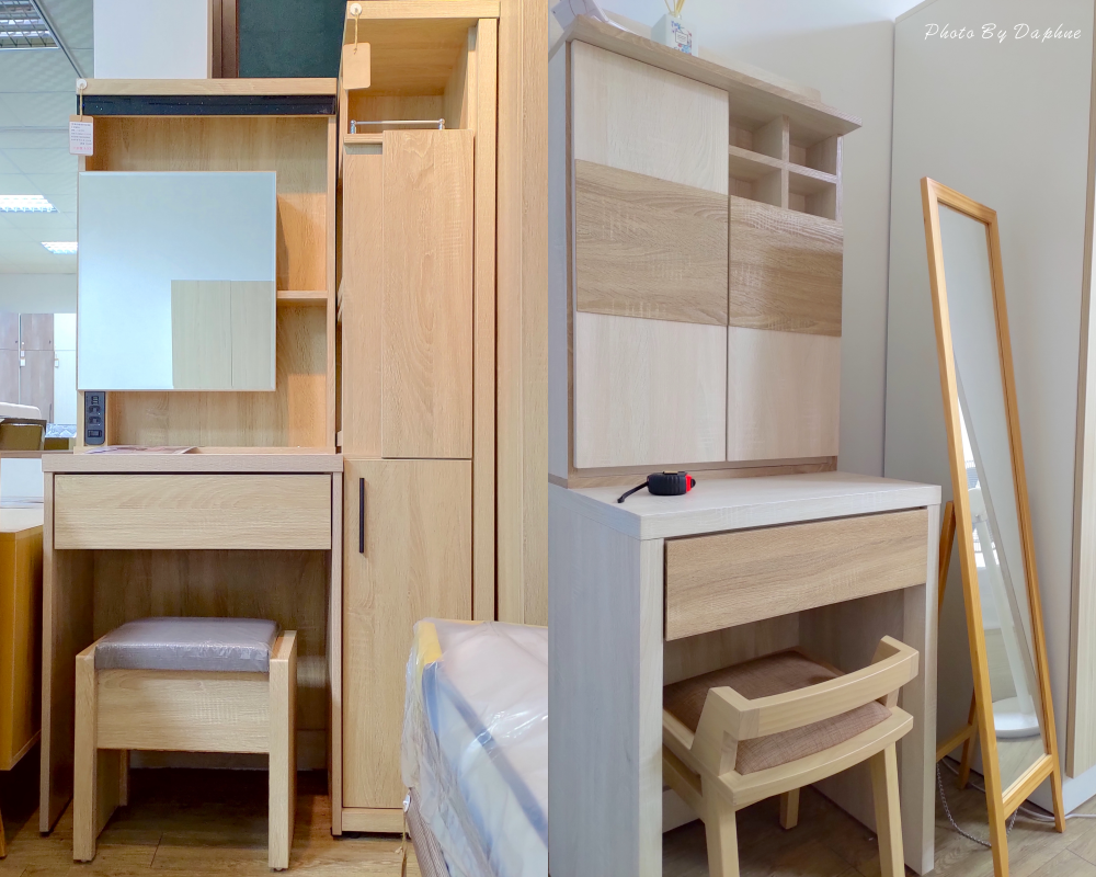▼旋轉鏡面的化妝台選擇性很多,隱藏收納讓桌面保持整潔,化妝椅附有抽屜設計,可以放不少保養品。