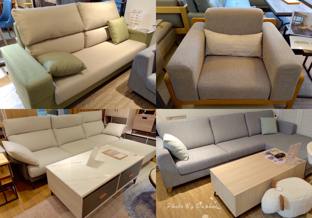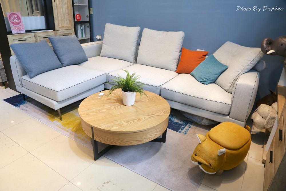 ▼沙發的布料有不同材質、顏色,沙發的骨架也有北美進口實木、柚木等材質,搭配的茶几也有半掀式、抽屜式,為客廳增加不同的機能與個性。