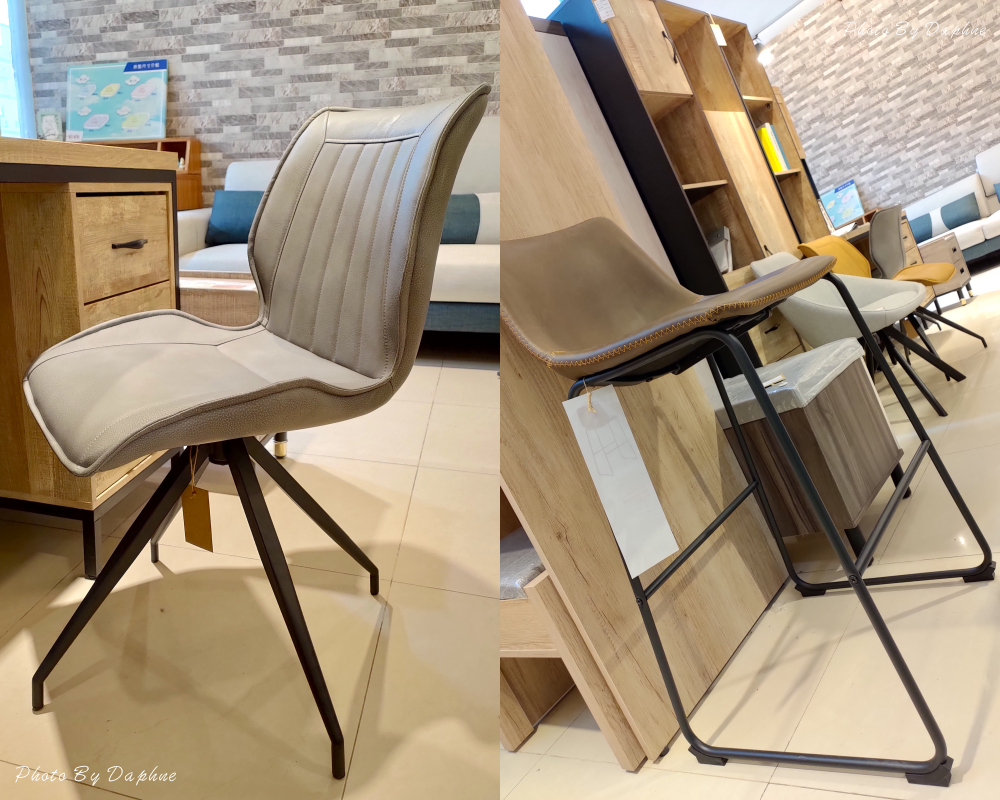▼旋轉椅可360度旋轉,運用透氣皮革,不會久坐不適,右邊的吧檯椅椅腳穩固,用在餐廳和商業空間接待處等地方都不錯。