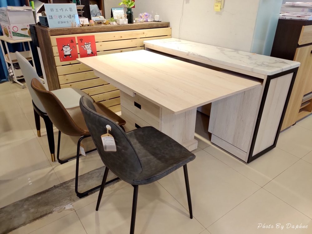 ▼億家具批發倉庫苗栗店是由建案樣品屋改成,與其他開在住宅區的門市很不一樣,門口開在右側,外觀不像一般家具行有大面玻璃窗能一探內部,看起來不大,但是認真逛起來也是需要一段時間的。開車前來時,車子可以停放在門口的停車位。