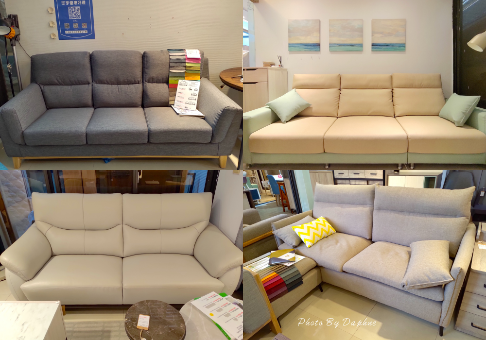 門市的展售方式注重「體驗」,各處放置不同樣式、材質、顏色的沙發,讓客人試坐實,親身體驗其觸感與軟硬度。