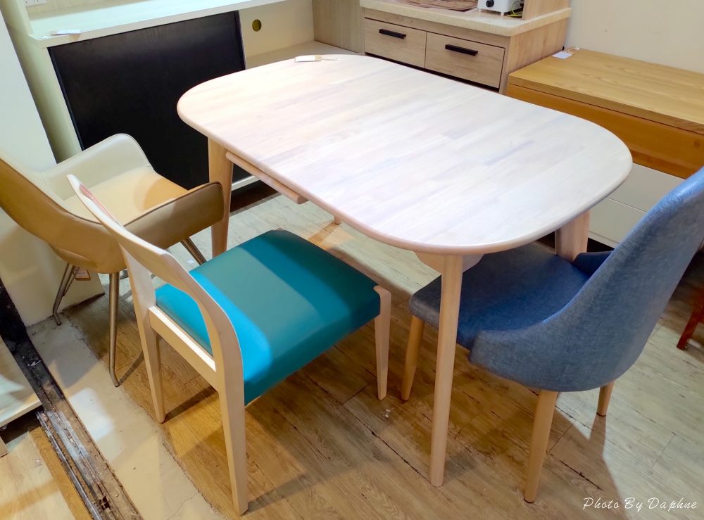 ▼凱西水洗白實木自動升降餐桌可拉開擴張,現在採買正是時候,吃飯時拉開以便保持社交距離,搭配顏色鮮明的餐椅,在這樣的桌椅吃飯,似乎特別美味。