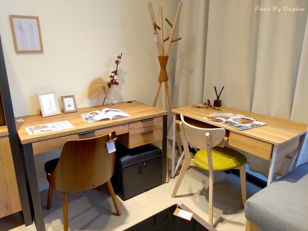 ▼照片中左邊雅博德4尺 USB 橡木書桌配的是摩爾胡桃實木腳黑皮餐椅,與右邊的二抽屜木製書桌都是簡單不失品味的產品。