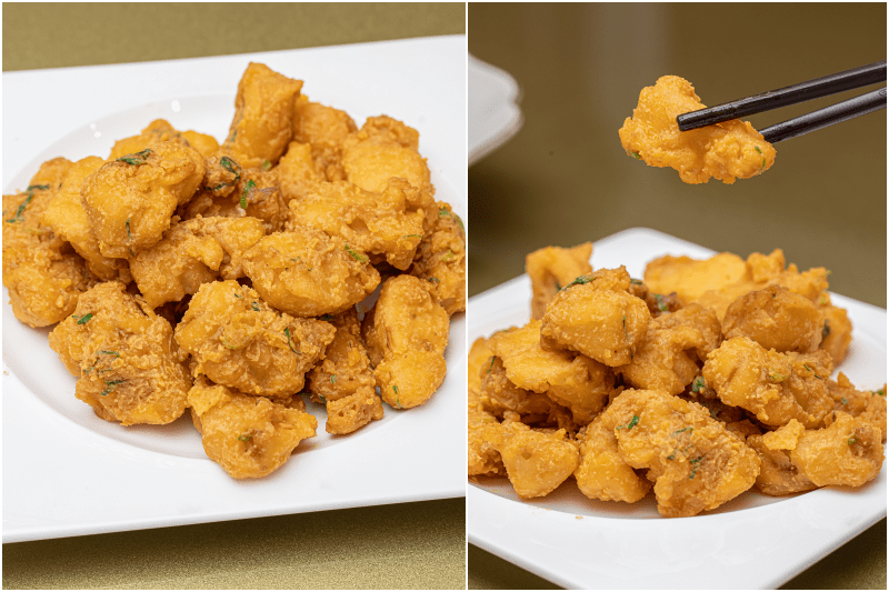 再來,開始進入濃郁的菜色部分,像是這道鹹香又夠脆口的金沙爽脆杏鮑菇,就是很好的佐餐菜色
