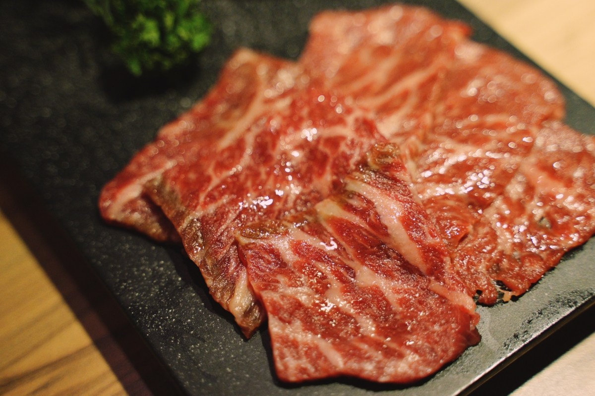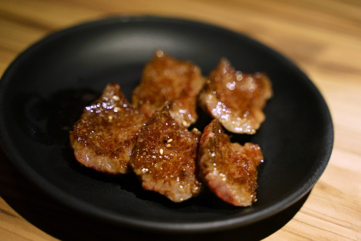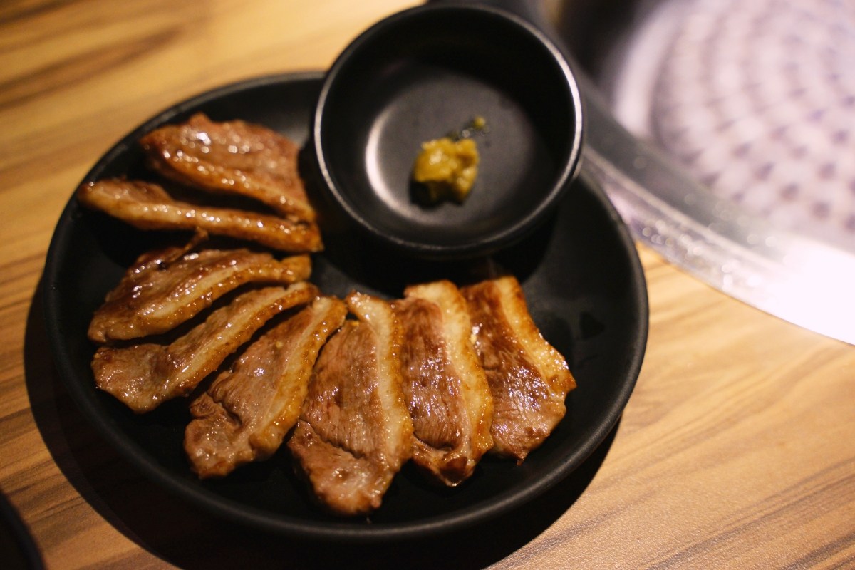 一上桌就眼冒愛心,這個油花好美好美,而且有大約一公分的厚度,燒烤的過程也很療癒。入口更是滿滿幸福感,口感十足,肉味鮮明,柔嫩帶嚼勁,水準很高!搭配燒肉醬汁入口,再挖兩口飯一起吃,實在太、舒、服。
