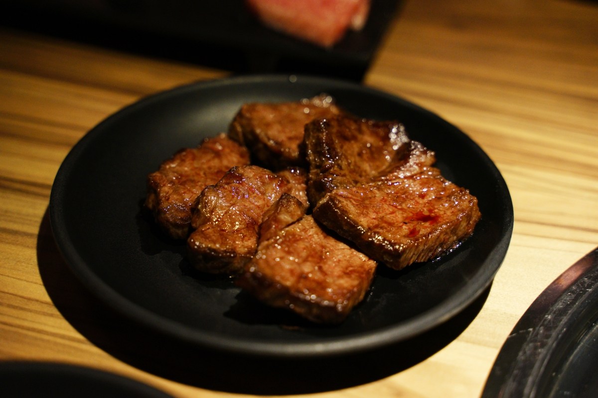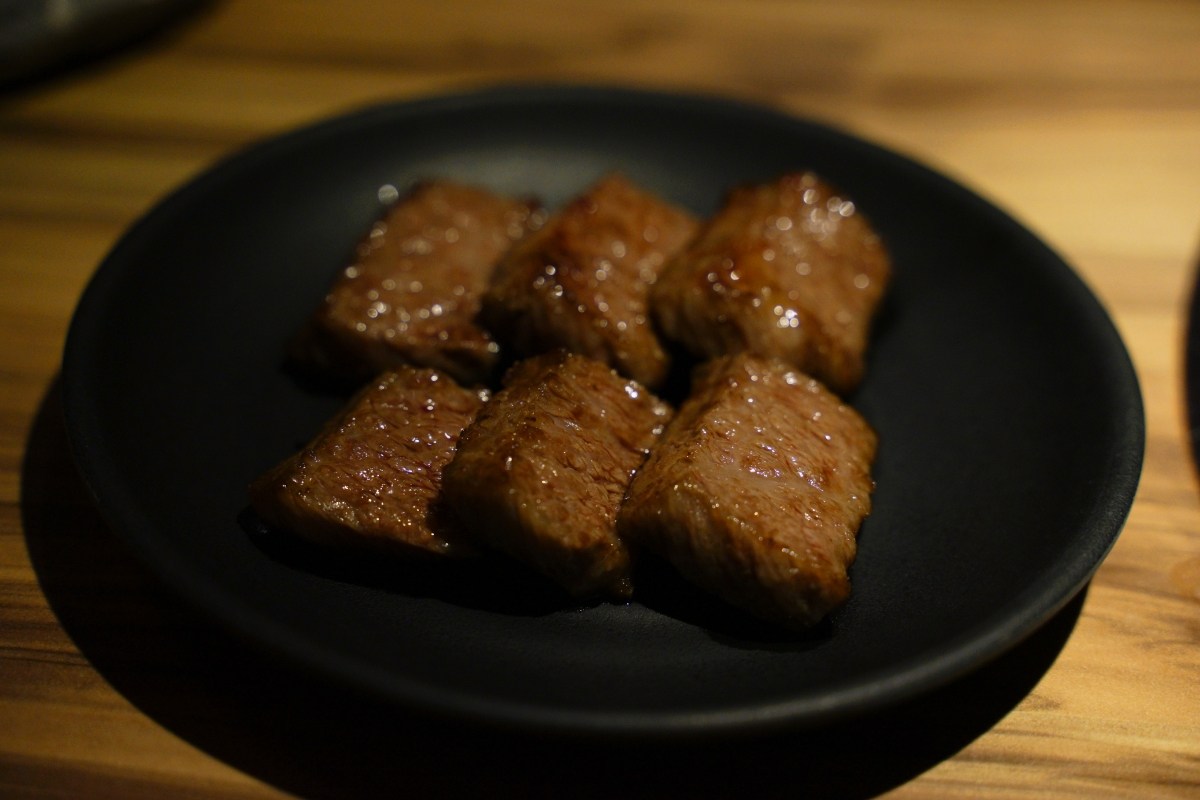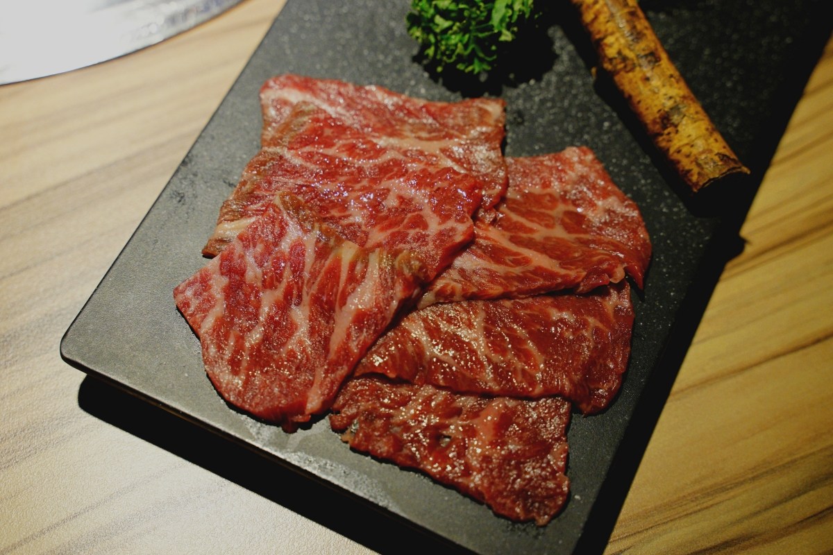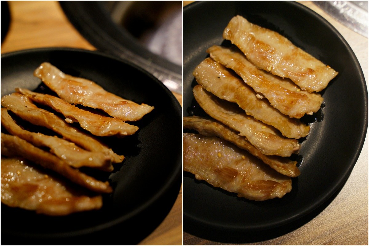 一上桌就眼冒愛心,這個油花好美好美,而且有大約一公分的厚度,燒烤的過程也很療癒。入口更是滿滿幸福感,口感十足,肉味鮮明,柔嫩帶嚼勁,水準很高!搭配燒肉醬汁入口,再挖兩口飯一起吃,實在太、舒、服。