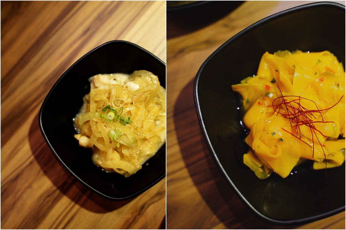 當然還有必備的醃漬小菜,這兩道都非常爽口解膩,我自己很愛洋蔥那道,因為加了山葵,整體風味帶點嗆味但又不會過分的搶味,總能在吃和牛吃到有點膩口(天哪好奢侈)的時候,拉回一點清爽的味覺,店家真的很貼心啊!