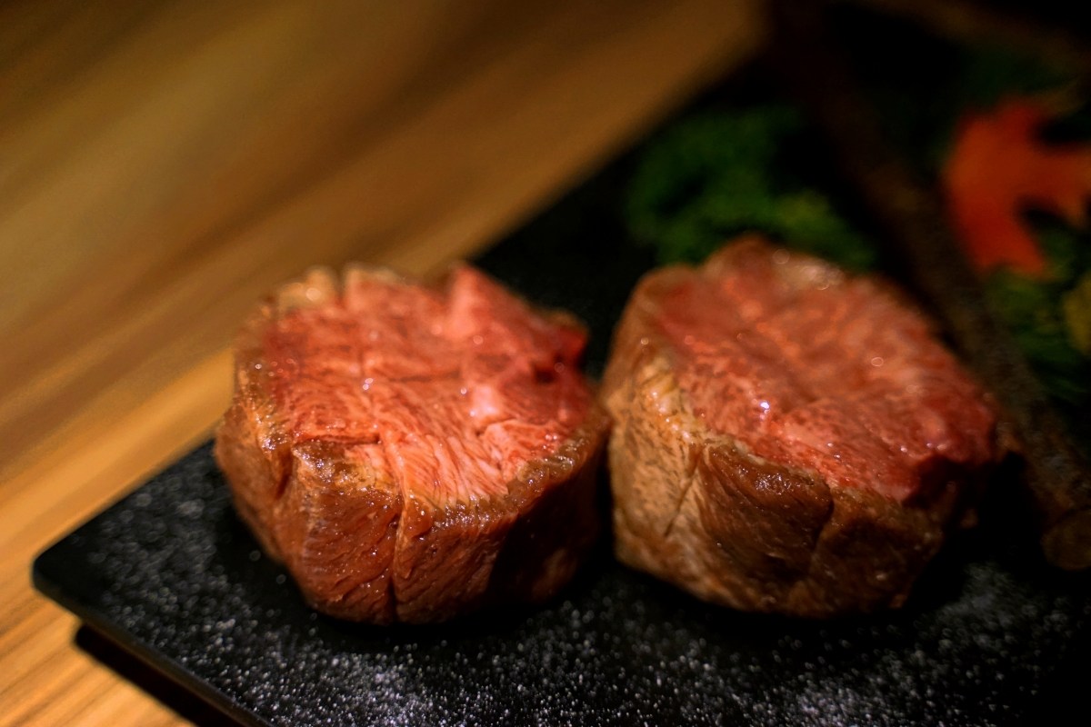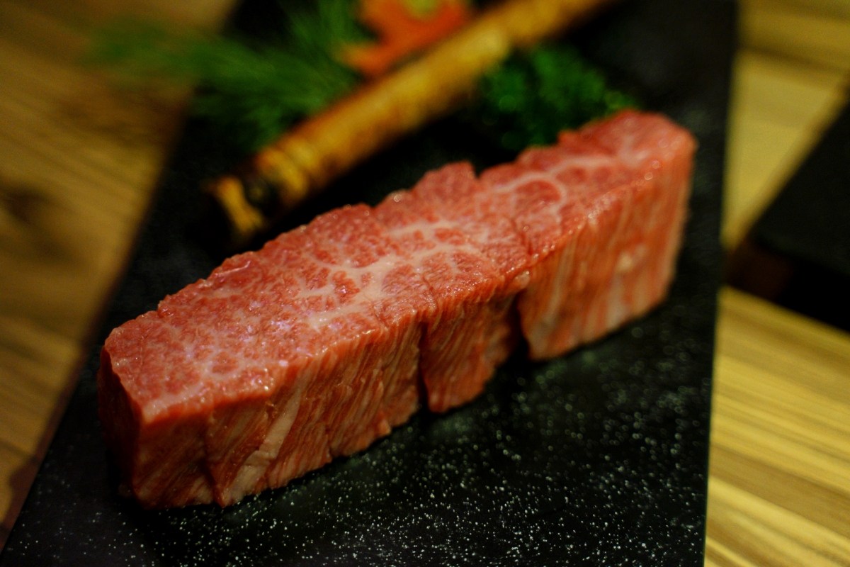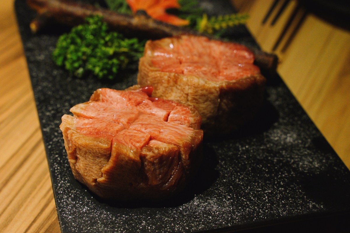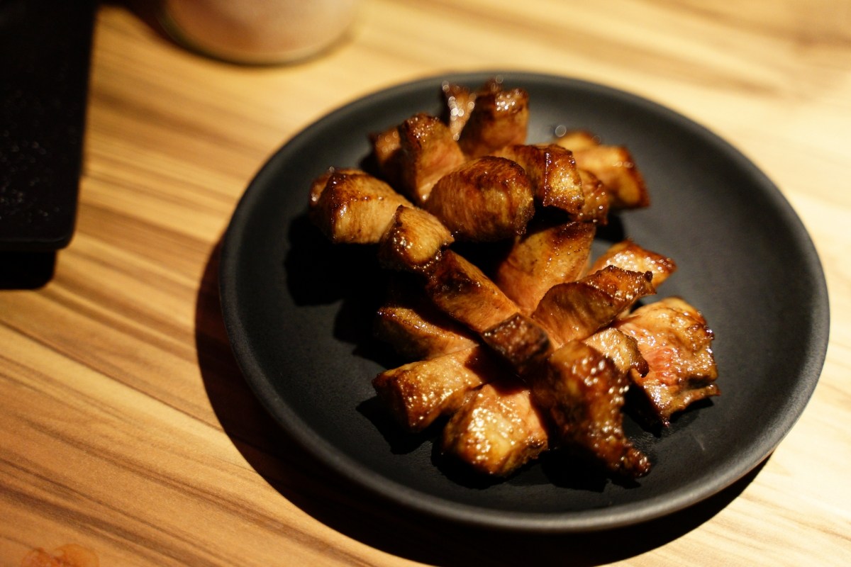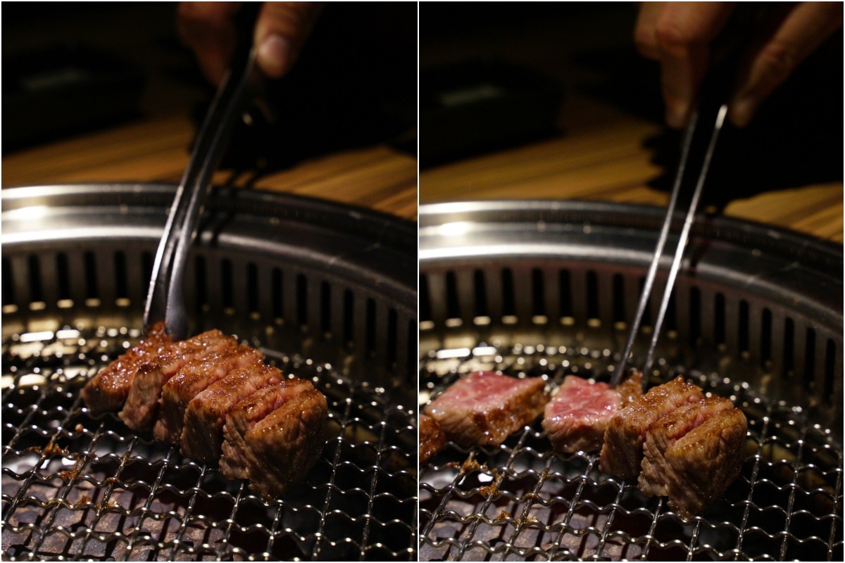 日本和牛就是威!這款大腹肉的油花超、美!一看就知道入口即化,口感柔嫩,但也因為油脂較多,服務人員建議烤熟一些比較不會膩口。一般會覺得比較生的肉吃起來最嫩,肉味最明顯,但真的要看肉質與油脂的分佈,每款肉品有適合的熟度,由專業人員燒烤最安心拉!幸好有服務人員的建議,我們一開始吃比較生的的確有點膩,調整到適合的熟度就真的是完美!