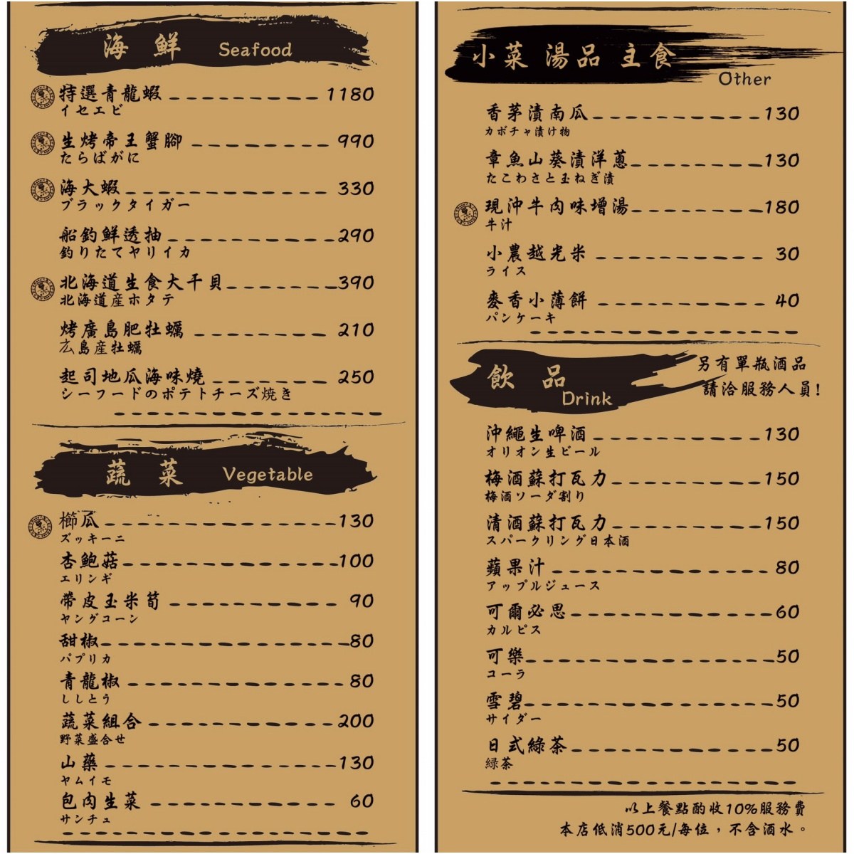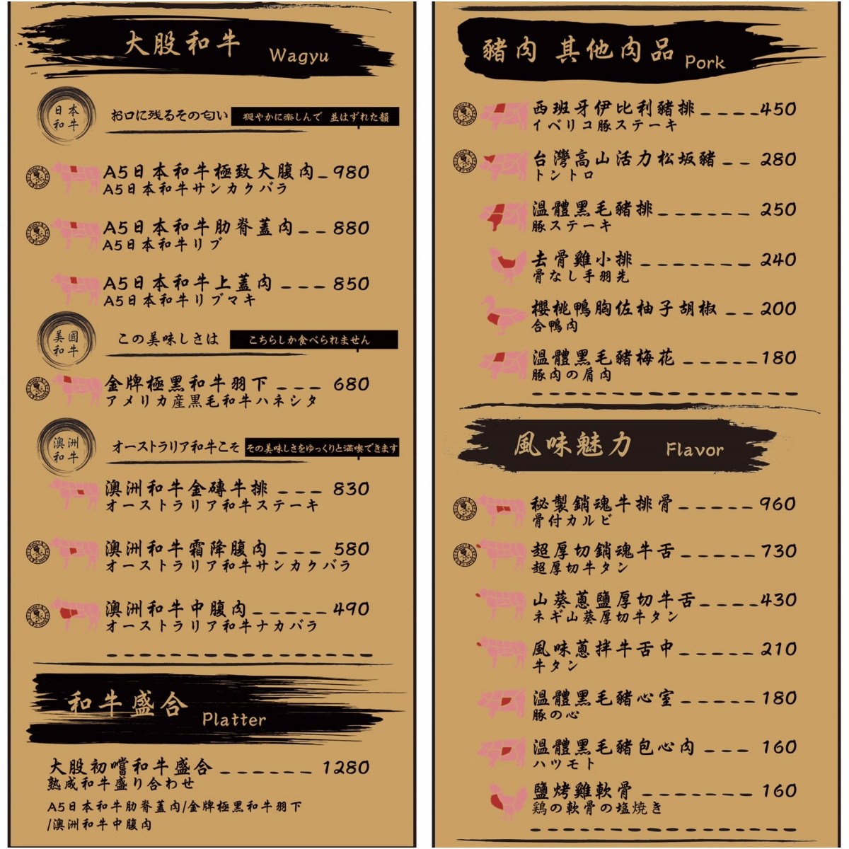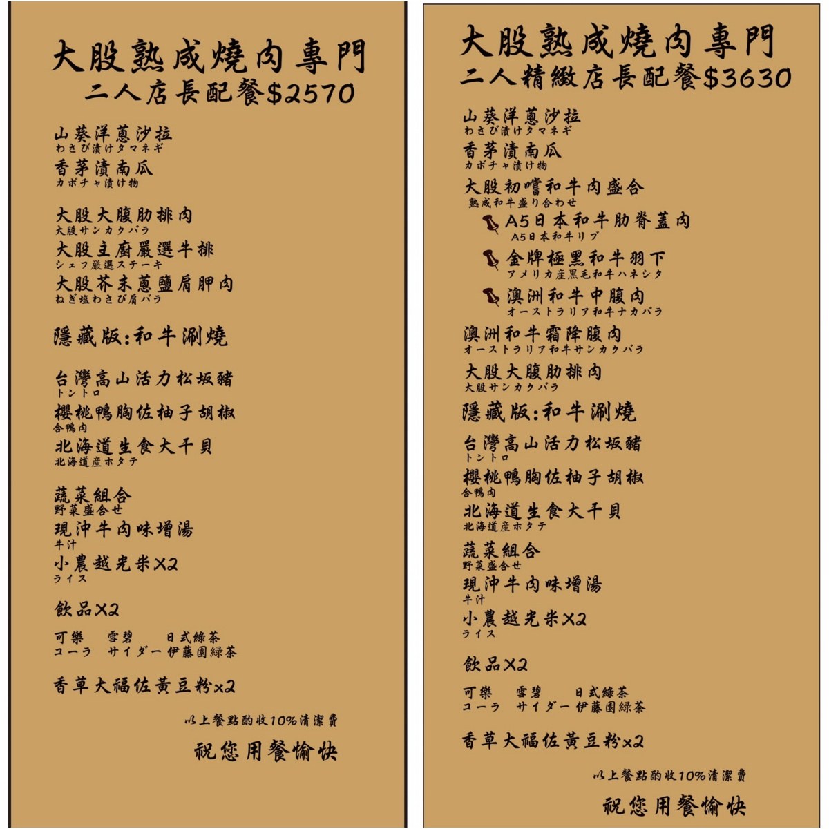 大股熟成燒肉專門就是以提供熟成牛肉為主的燒肉店,這句話好像廢話,但我要說的是除了牛肉還有豬肉、鴨肉、雞肉和海鮮,所以不吃牛肉一樣可以來享用美味的燒肉,由於是專人燒烤,每樣肉品都能在專業的服務人員手下發揮最厲害的口感與風味。