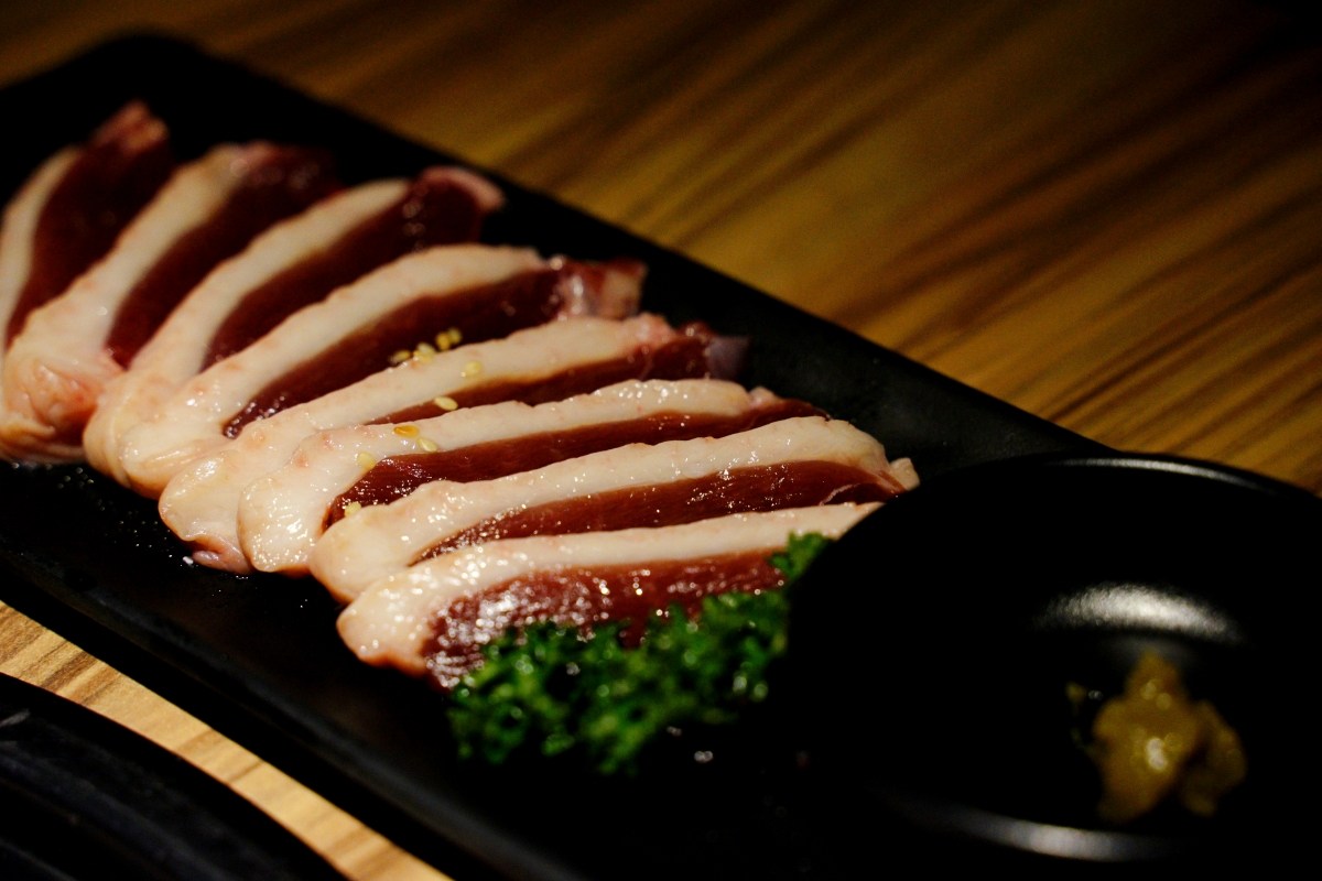 鴨肉本身就比較結實,口感也較有嚼勁,搭配柚子胡椒有增添香氣與層次。