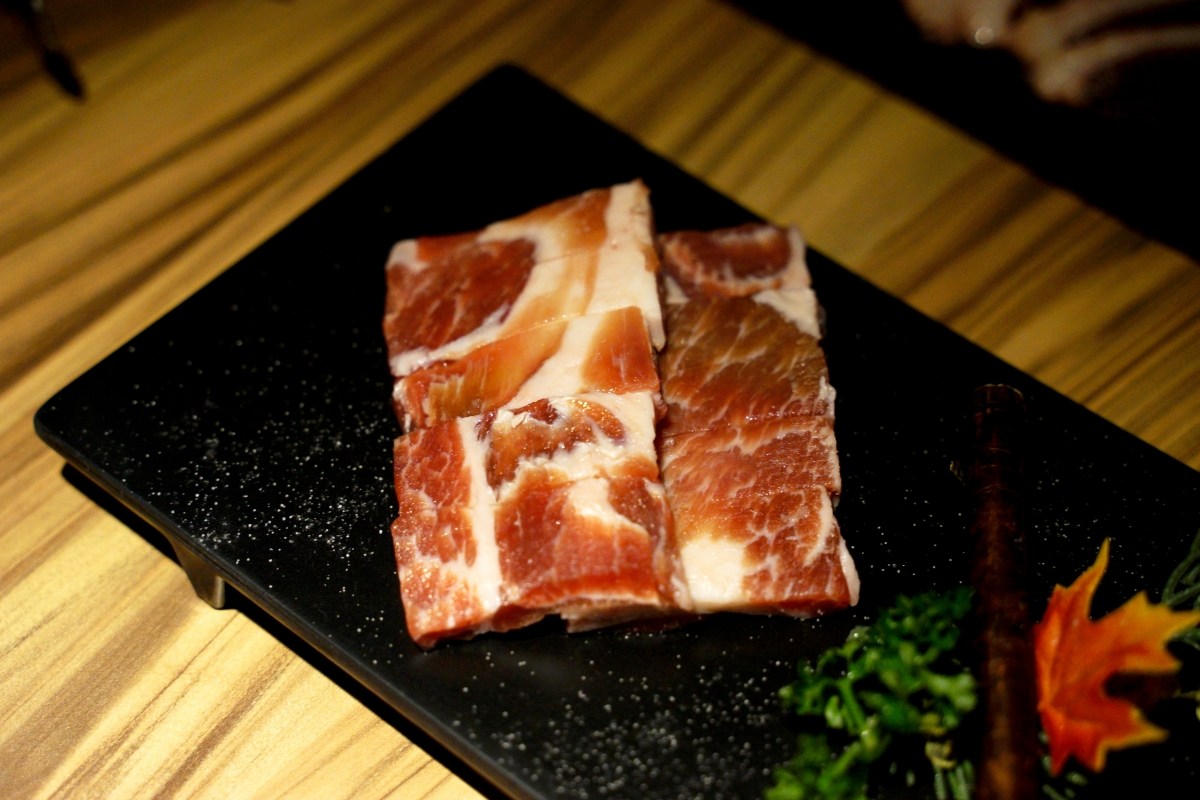 平常吃的牛舌就是切薄片,上面放蔥鹽,燒烤一下就可以直接入口,鮮少吃到這麼厚的牛舌,大約 2.5~3 公分,這道厚切牛舌是採用牛舌後段的部分,因為厚度的關係建議熟度是全熟哦!口感的部分,一般的薄切牛舌是爽脆,而厚切牛舌的口感偏硬脆。一般的燒烤店基本上不會有厚切牛舌,因為處理起來費工,且大部分要客人自行燒烤的店家較多,客人也比較不會燒烤這麼厚的牛舌,只有在比較高級的燒肉店才有,鮮少遇到,值得一試。