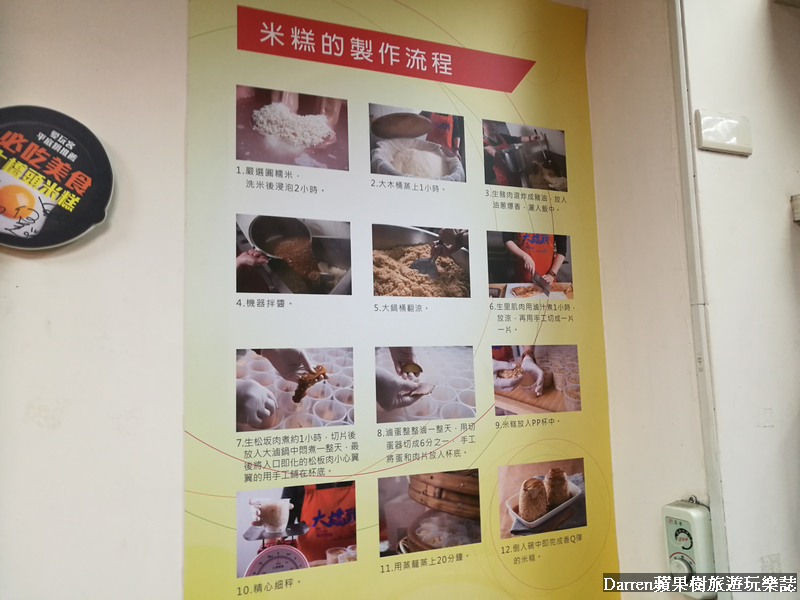 牆面上貼有大橋頭米糕菜單以及米糕製作方式