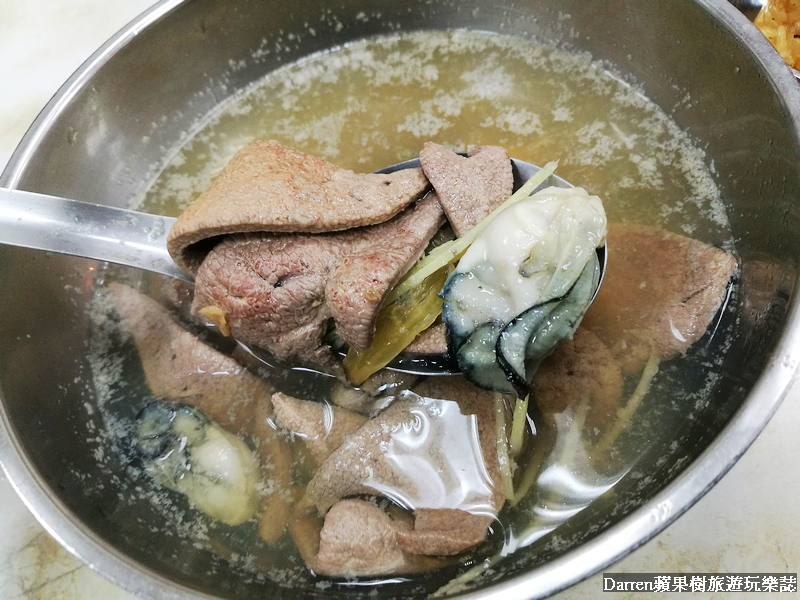 湯我點了海陸湯有豬肝加蚵仔,湯頭清甜我還沒吃米糕前就喝了不少口湯,海陸吃法非常浮誇但也很好吃,完全不會有強弱之分,就是兩種食材搭配起來都表現很棒,樹小編還蠻推薦來到這裡一定要點碗海陸湯,大橋頭米糕整體表現真得有突破對於筒仔米糕的常見印象,可以選擇瘦肉和肥肉很棒,米糕整體完整度很高值得再訪