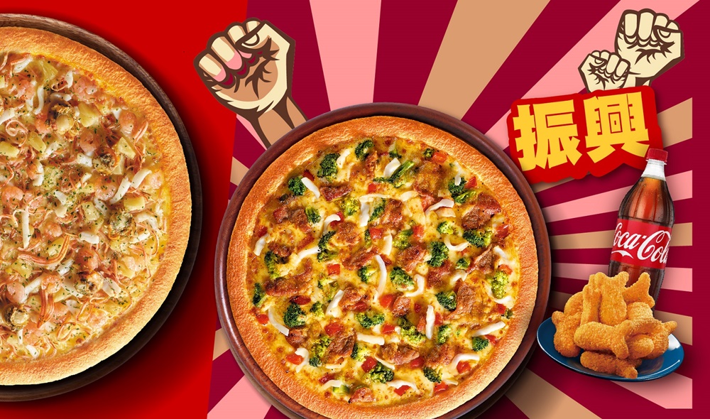 不用等到振興三倍券發售,必勝客祭出澎湃「振興一送三豪華」以及「振興一送三經典」兩種套餐,「振興一送三豪華套餐」,購買指定豪華口味大比薩,即贈外帶大比薩或外送小比薩、10塊黃金和風鱈魚塊,及1.25L可口可樂;「振興一送三經典套餐」,購買指定口味之大比薩,即贈送BBQ口味厚燒醬烤(2腿2排)、薯星星20顆,以及1.25L可口可樂1瓶,限定6月23日起到7月13日期間,詳情請洽官網及Fb粉絲專頁。