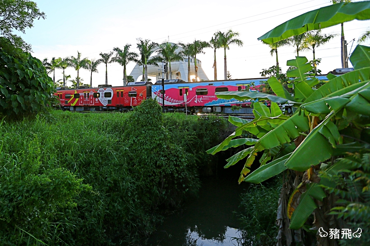 嘉油鐵馬道、鐵路、北回歸線太陽館,平行的三者成為最佳美景拍攝地!抓到列車過去的瞬間美景,眼前風景不輸國外風景。