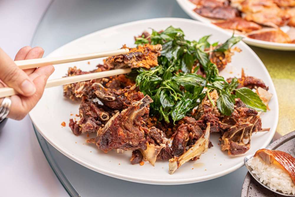 而金牌長承烤鴨的豆撈鴨架是用大火快炒豆撈醬,走一種比台式烤鴨更強烈與增強甘味的口感,醬汁濃淡適宜不會太鹹,不只炒出那種鴨肉的厚實感,也讓帶著很多肉的鴨架越啃越過癮