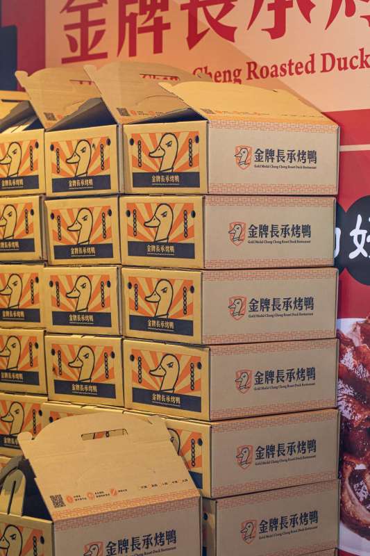 一箱又一箱的外帶盒,也證明金牌長承烤鴨的外帶生意有多好
