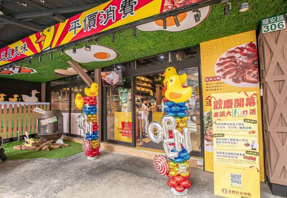 因為是走廣式路線,所以是使用悶爐方式,再加上模擬出烤鴨的感受,所以金牌長承烤鴨在門口還刻意擺上一個悶爐的意象,展現出烤鴨餐廳的特色與精神