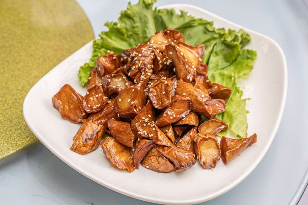 再來這道名為極汁杏鮑菇,以風味來說口感偏向日式照燒