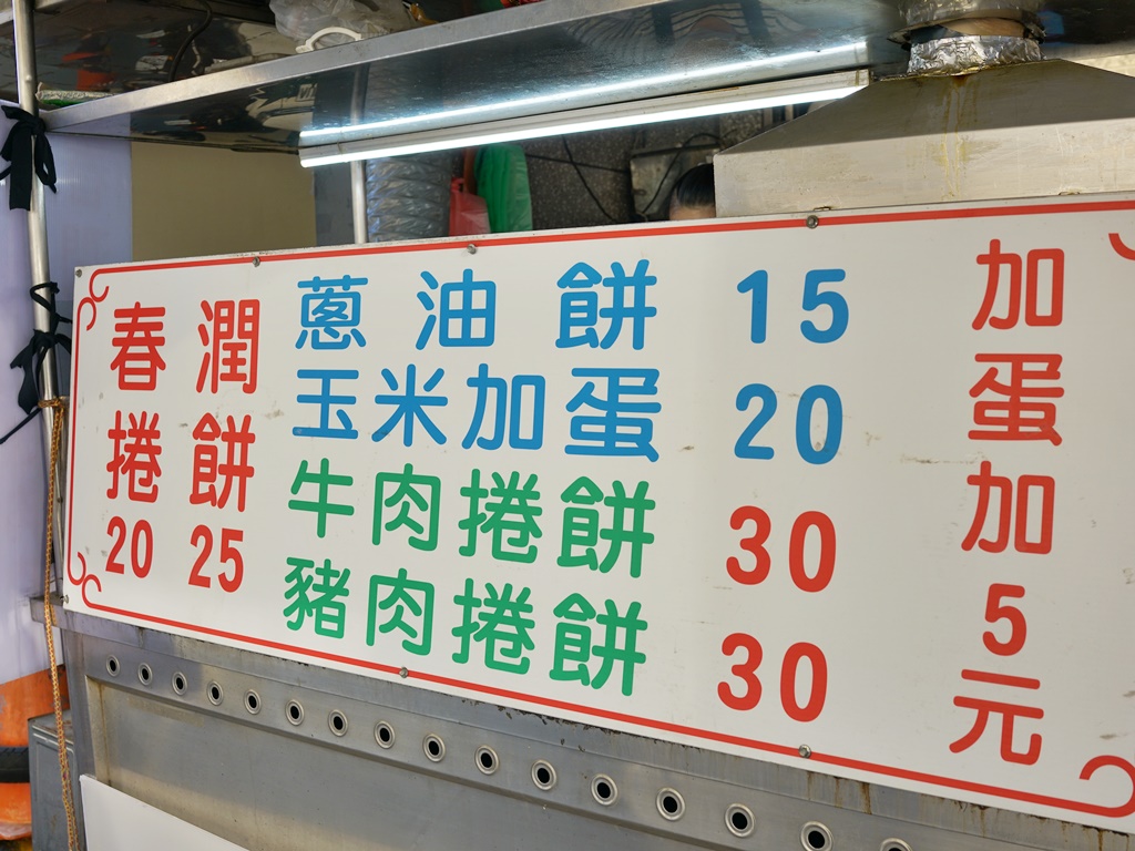 除了蔥油餅、牛肉捲餅、豬肉捲餅,還有春捲和潤餅,價格不可思議超便宜!