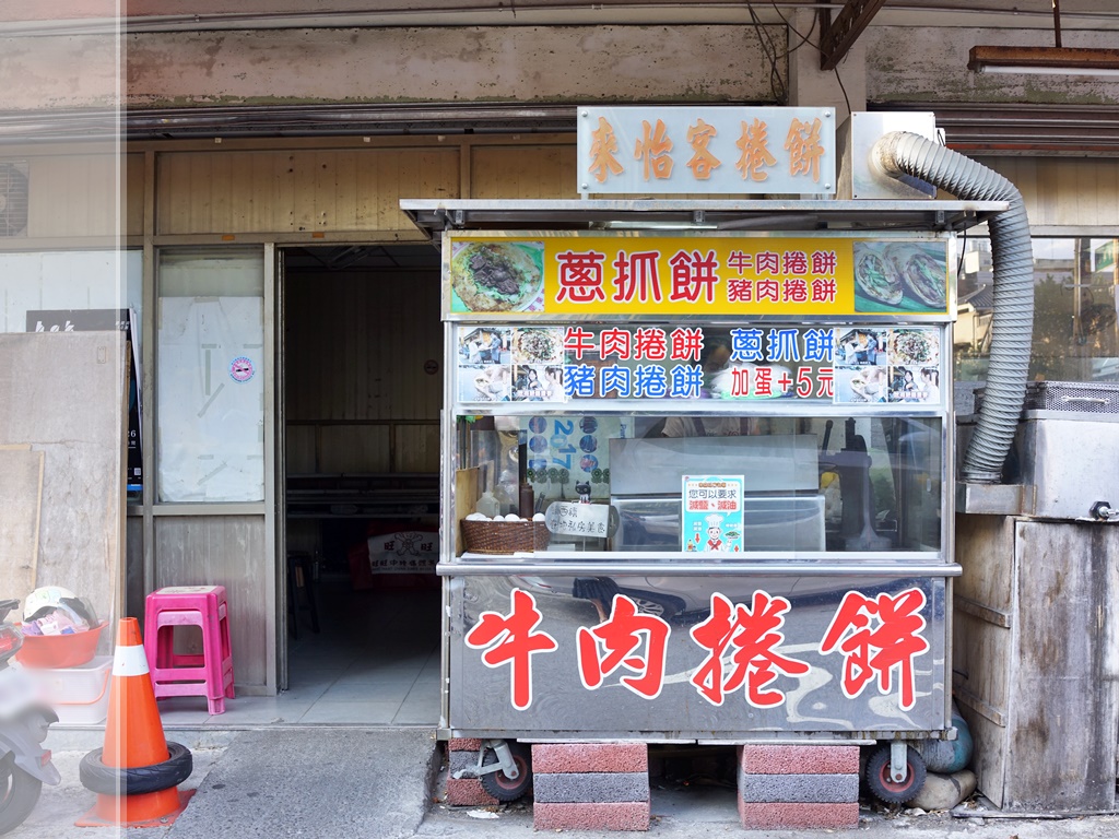 來怡客販售的品項比較簡單,只有蔥抓餅、牛肉捲餅與豬肉捲餅,價格沒有清楚標示,要詢問老闆才知道,跟關西牛肉捲餅一樣便宜,蔥抓餅15元、牛肉捲餅/豬肉捲餅30元,加蛋+5元。
