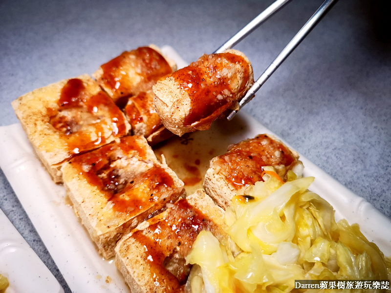 脆皮臭豆腐在厚實的豆腐中間挖一個洞,老饕吃法就是把泡菜塞進豆腐內,臭很大臭豆腐的泡菜是百香果泡菜,帶有果香泡菜讓臭豆腐風味更加迷人,外皮酥香內嫩多汁,吃起來就是有種幸福感