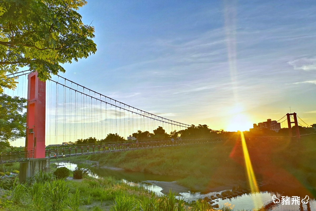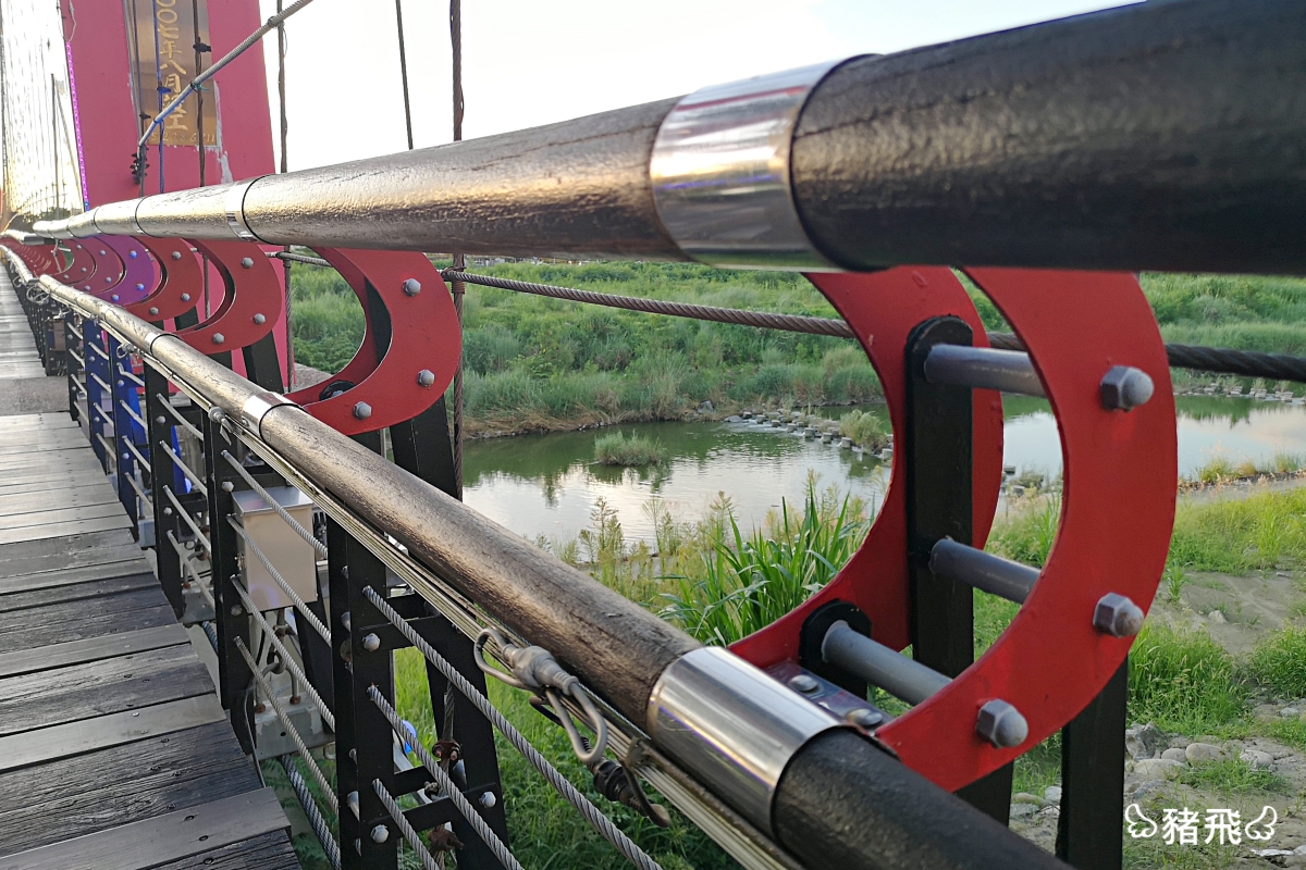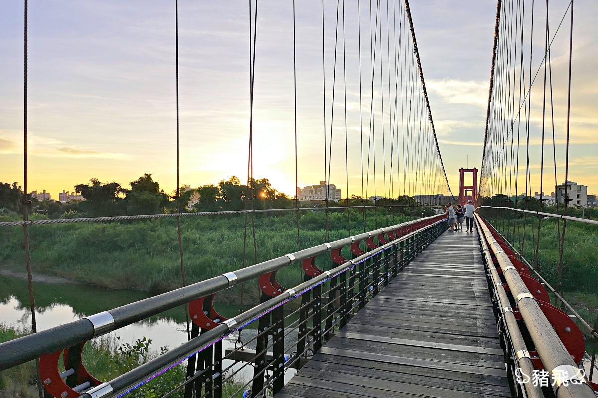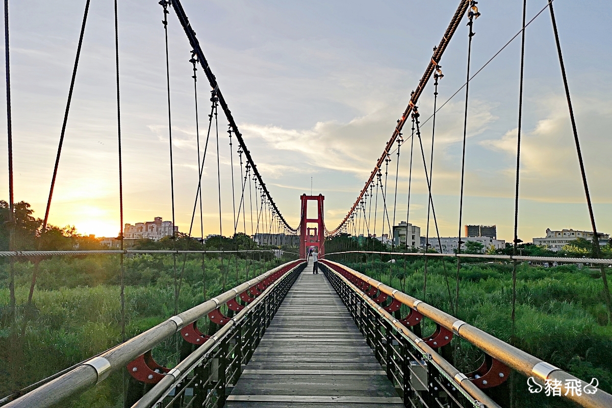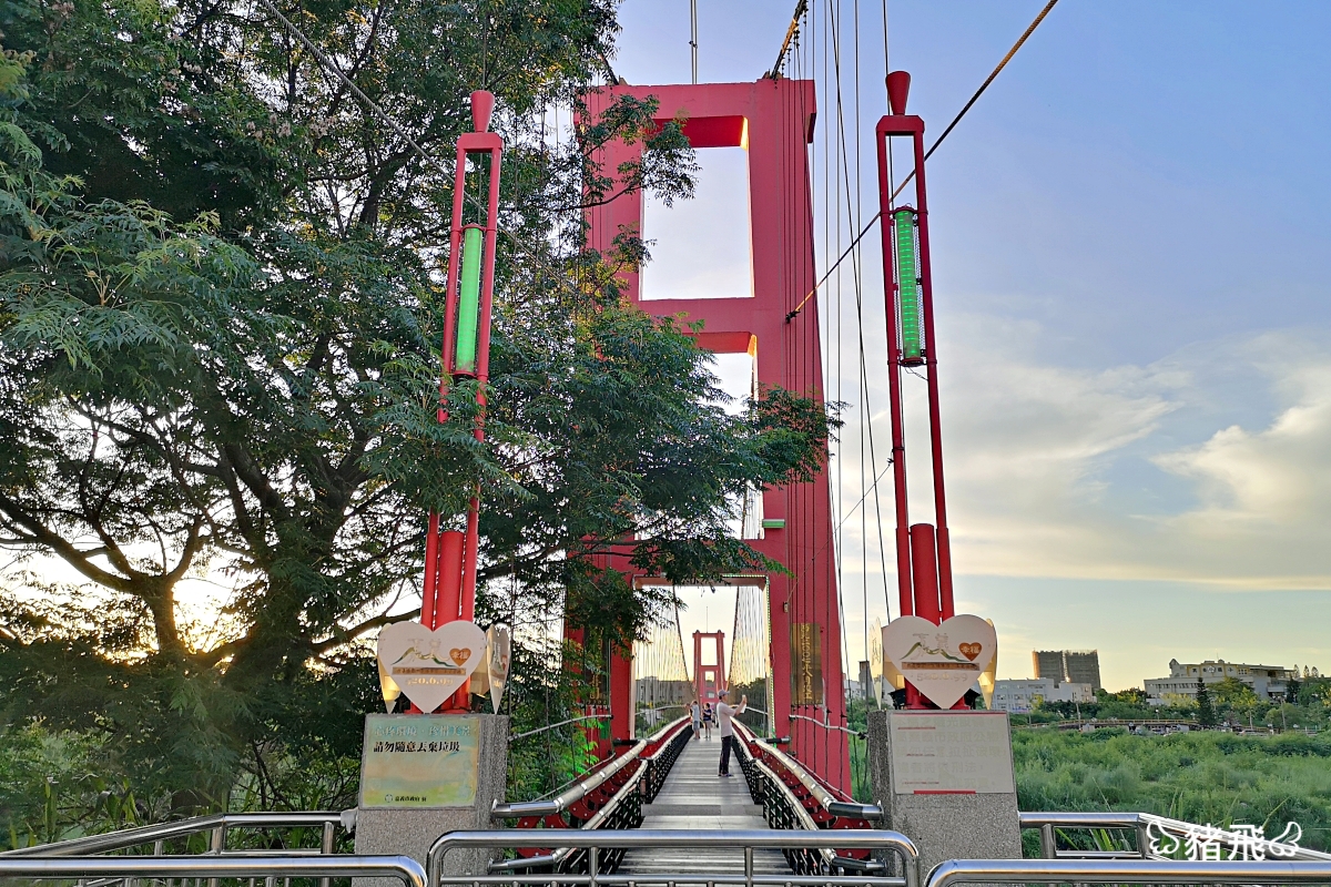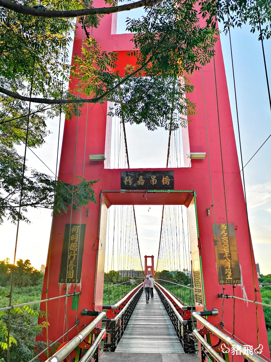 行走在吊橋上,風徐徐吹來,放眼望去可以看到天空、橋與溪連成一幅畫,沒想到在嘉義市還有這麼一處少為人知的景點。天氣好的時候可以從夕陽待到夜晚,欣賞不同風貌的吊橋風光。