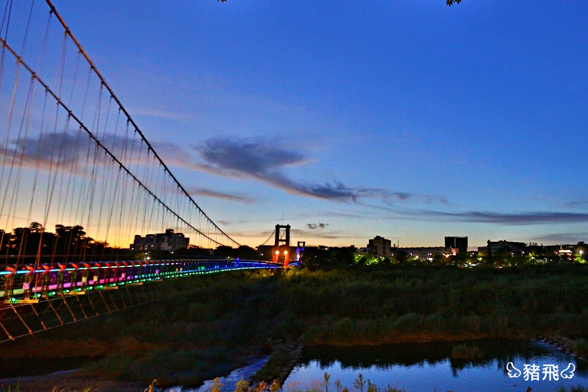 嘉義的夜景秘境在這裡!橫跨八掌溪上的美麗吊橋,夜晚好適合這裡散步賞美景。