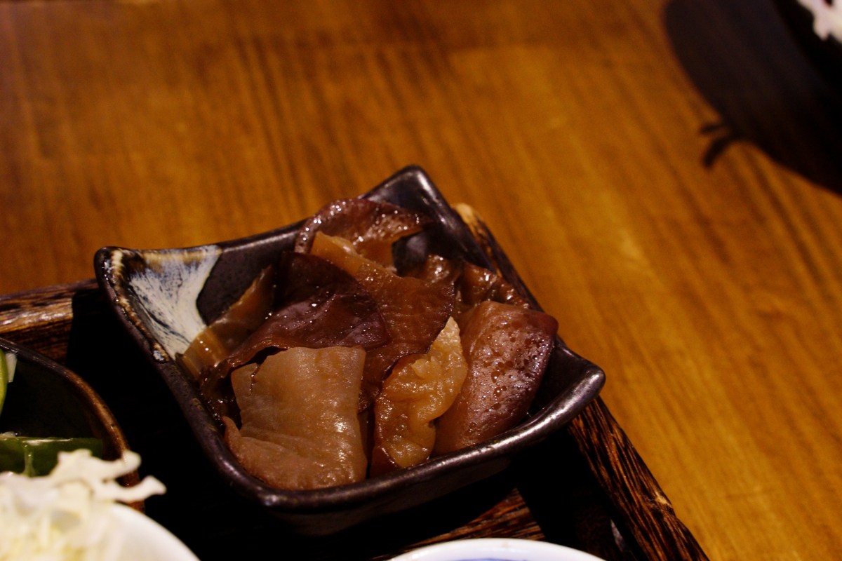 口感有彈性帶有嚼勁,需要咀嚼但還算好入口。味道上我個人覺得原本的調味有點甜,可能沾取旁邊的燒肉醬汁和椒鹽會好一些,這道餐點我吃的時候,的確需要多吃幾口清爽解膩的小菜。