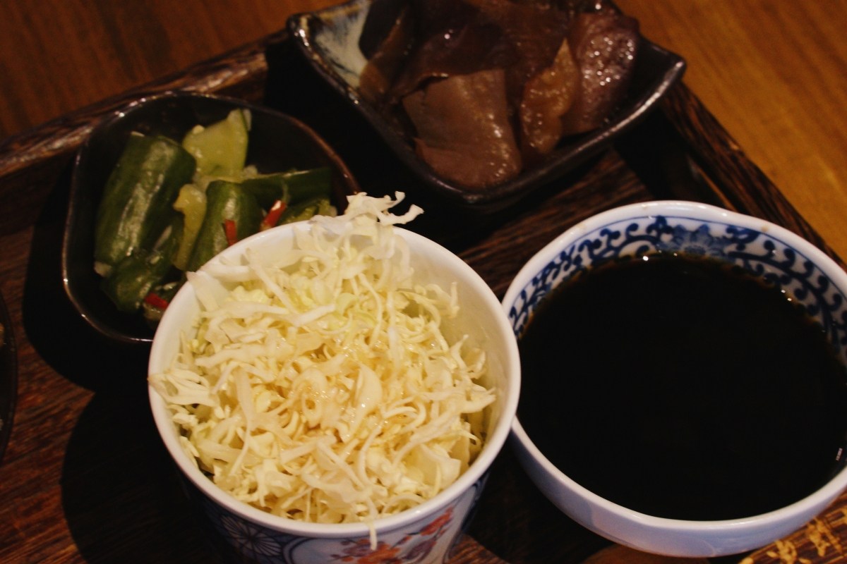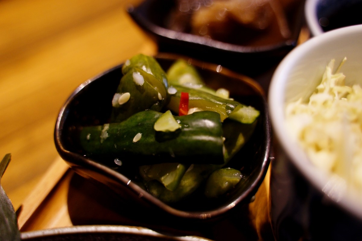 搭配套餐附上的兩樣小菜,當天吃到的是涼拌小黃瓜和涼拌木耳,酸甜香又帶點微辣,在炎夏中扮演著剛好的配角。一小碗生菜絲原本就有一點和風醬,如果覺得不夠味,可以到櫃台前面自行酌量淋上生菜醬汁。